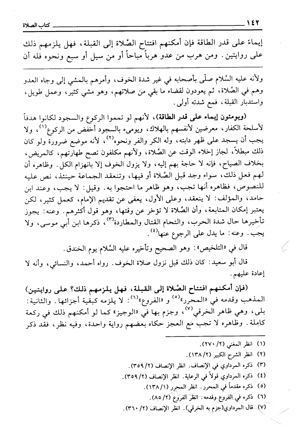 إِيمَاءً عَلَى قَدْرِ الطَّاقَةِ. فَإِنْ أَمْكَنَهُمُ افْتِتَاحُ الصَّلَاةِ إِلَى الْقِبْلَةِ، فَهَلْ يَلْزَمُهُمْ ذَلِكَ؛ عَلَى رِوَايَتَيْنِ، وَمَنْ هَرَبَ مِنْ عَدُوٍّ هَرَبًا مُبَاحًا أَوْ مِنْ سَيْلٍ أَوْ سَبُعٍ وَنَحْوِهِ، فَلَهُ أَنْ