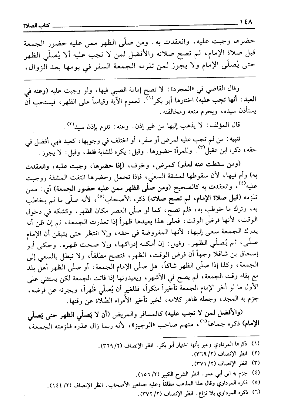 ـــــــــــــــــــــــــــــQالْعَبْدِ، وَقَالَ الْقَاضِي فِي " الْمُجَرَّدِ ": لَا تَصِحُّ إِمَامَةُ الصَّبِيِّ فِيهَا، وَلَوْ وَجَبَتْ عَلَيْهِ (وَعَنْهُ: فِي الْعَبْدِ أَنَّهَا تَجِبُ عَلَيْهِ) اخْتَارَهَا أَبُو بَكْرٍ لِعُمُومِ الْآيَةِ، وَقِيَاسًا عَلَى الظُّهْرِ، فَيُسْتَحَبُّ أَنْ يَسْتَأْذِنَ سَيِّدَهُ، وَيَحْرُمُ مَنْعُهُ وَمُخَالَفَتُهُ، قَالَ الْمُؤَلِّفُ: لَا يَذْهَبُ إِلَيْهَا مِنْ غَيْرِ إِذْنٍ، وَعَنْهُ: تَلْزَمُ بِإِذْنِ سَيِّدٍ.