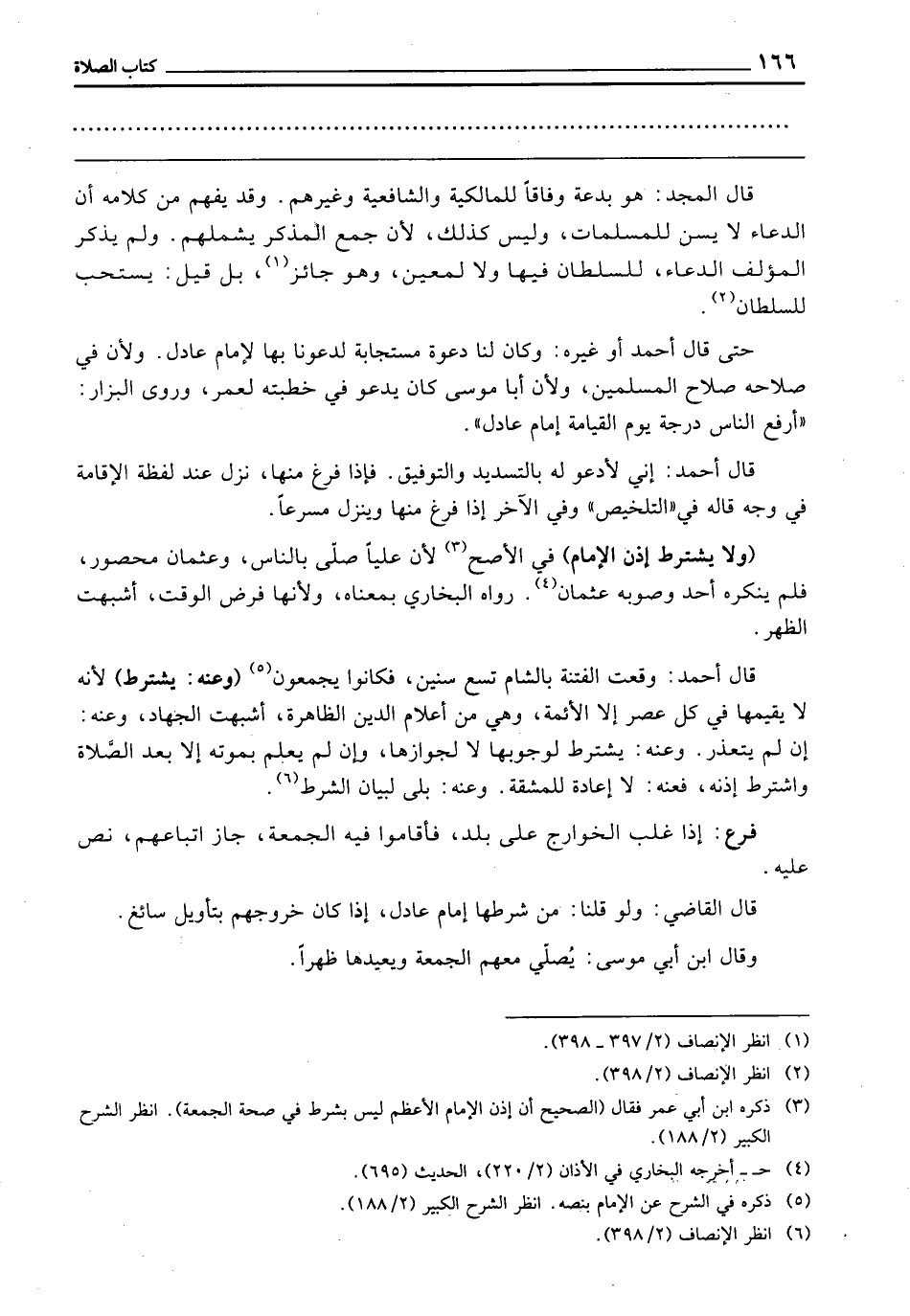 ـــــــــــــــــــــــــــــQيُسْتَحَبُّ، قَالَ الْمَجْدُ: هُوَ بِدْعَةٌ وِفَاقًا لِلْمَالِكِيَّةِ، وَالشَّافِعِيَّةِ، وَغَيْرِهِمْ، وَقَدْ يُفْهَمُ مِنْ كَلَامِهِ أَنَّ الدُّعَاءَ لَا يُسَنُّ لِلْمُسْلِمَاتِ، وَلَيْسَ كَذَلِكَ؛ لِأَنَّ جَمْعَ الْمُذَكَّرِ يَشْمَلُهُمْ، وَلَمْ يَذْكُرِ الْمُؤَلِّفُ الدُّعَاءَ لِلسُّلْطَانِ فِيهَا، وَلَا لِمُعَيَّنٍ؛ وَهُوَ جَائِزٌ، بَلْ قِيلَ: يُسْتَحَبُّ لِلسُّلْطَانِ، حَتَّى قَالَ أَحْمَدُ أَوْ غَيْرُهُ: لَوْ كَانَ لَنَا دَعْوَةٌ مُسْتَجَابَةٌ لَدَعَوْنَا بِهَا لِإِمَامٍ عَادِلٍ، وَلِأَنَّ فِي صَلَاحِهِ صَلَاحَ الْمُسْلِمِينَ، وَلِأَنَّ أَبَا مُوسَى كَانَ يَدْعُو فِي خُطْبَتِهِ لِعُمَرَ، وَرَوَى الْبَزَّارُ: أَرْفَعُ النَّاسِ دَرَجَةً يَوْمَ الْقِيَامَةِ إِمَامٌ عَادِلٌ. قَالَ أَحْمَدُ: إِنِّي لَأَدْعُو لَهُ بِالتَّسْدِيدِ وَالتَّوْفِيقِ.