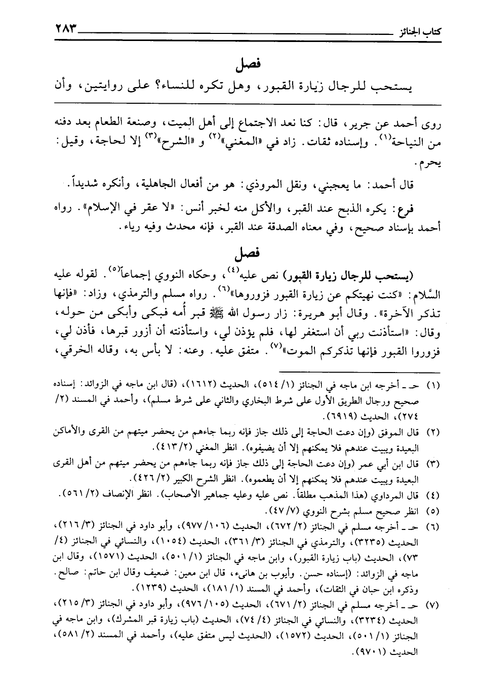 فَصْلٌ يُسْتَحَبُّ لِلرِّجَالِ زِيَارَةُ الْقُبُورِ. وَهَلْ تُكْرَهُ لِلنِّسَاءِ؛ عَلَى رِوَايَتَيْنِ، وَأَنْ