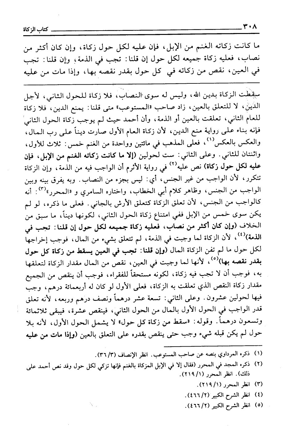 ـــــــــــــــــــــــــــــQسَقَطَتِ الزَّكَاةُ بِدَيْنِ اللَّهِ، وَلَيْسَ لَهُ سِوَى النِّصَابِ، فَلَا زَكَاةَ لِلْحَوْلِ الثَّانِي، لِأَجْلِ الدَّيْنِ، لَا لِلتَّعَلُّقِ بِالْعَيْنِ، زَادَ صَاحِبُ " الْمُسْتَوْعِبِ " مَتَى قُلْنَا: يَمْنَعُ الدَّيْنُ، فَلَا زَكَاةَ لِلْعَامِ الثَّانِي تَعَلَّقَتْ بِالْعَيْنِ أَوِ الذِّمَّةِ، وَإِنَّ أَحْمَدَ حَيْثُ لَمْ يُوجِبْ زَكَاةَ الْحَوْلِ الثَّانِي فَإِنَّهُ بِنَاءً عَلَى رِوَايَةِ مَنْعِ الدَّيْنِ؛ لِأَنَّ زَكَاةَ الْعَامِ الْأَوَّلِ صَارَتْ دَيْنًا عَلَى رَبِّ الْمَالِ، وَالْعَكْسُ بِالْعَكْسِ، فَعَلَى الْمَذْهَبِ فِي مِائَتَيْنِ وَوَاحِدَةٍ مِنَ الْغَنَمِ خَمْسٌ: ثَلَاثٌ لِلْأَوَّلِ، وَاثْنَتَانِ لِلثَّانِي، وَعَلَى الثَّانِي: سِتٌّ لِحَوْلَيْنِ (إِلَّا مَا كَانَتْ زَكَاتُهُ الْغَنَمَ مِنَ الْإِبِلِ، فَإِنَّ عَلَيْهِ لِكُلِّ حَوْلٍ زَكَاةً) نَصَّ عَلَيْهِ فِي رِوَايَةِ الْأَثْرَمِ أَنَّ الْوَاجِبَ فِيهِ مِنَ الذِّمَّةِ، وَإِنَّ الزَّكَاةَ تَتَكَرَّرُ؛ لِأَنَّ الْوَاجِبَ مِنْ غَيْرِ الْجِنْسِ، أَيْ: لَيْسَ بِجُزْءٍ مِنَ النِّصَابِ، وَبِهِ يُفَرَّقُ بَيْنَهُ وَبَيْنَ الْوَاجِبِ مِنَ الْجِنْسِ، وَظَاهِرُ كَلَامِ أَبِي الْخَطَّابِ، وَاخْتَارَهُ السَّامِرِيُّ، وَ " الْمُحَرَّرُ " أَنَّهُ كَالْوَاجِبِ مِنَ الْجِنْسِ؛ لِأَنَّ تَعَلُّقَ الزَّكَاةِ كَتَعَلُّقِ الْأَرْشِ بِالْجَانِي. فَعَلَى مَا ذَكَرَهُ، لَوْ لَمْ يَكُنْ سِوَى خَمْسٍ مِنَ الْإِبِلِ فَفِي امْتِنَاعِ زَكَاةِ الْحَوْلِ الثَّانِي؛ لِكَوْنِهَا دَيْنًا، مَا سَبَقَ مِنَ الْخِلَافِ (وَإِنْ كَانَ أَكْثَرَ مِنْ نِصَابٍ، فَعَلَيْهِ زَكَاةُ جَمِيعِهِ لِكُلِّ حَوْلٍ إِنْ قُلْنَا: تَجِبُ فِي الذِّمَّةِ) ؛ لِأَنَّ الزَّكَاةَ لَمَّا وَجَبَتْ فِي الذِّمَّةِ، لَمْ تَتَعَلَّقْ بِشَيْءٍ مِنَ الْمَالِ، فَوَجَبَ إِخْرَاجُهَا لِكُلِّ حَوْلٍ مَا لَمْ تُفْنِ الزَّكَاةُ الْمَالَ (وَإِنْ قُلْنَا: تَجِبُ فِي الْعَيْنِ يَسْقُطُ مِنْ زَكَاةِ كُلِّ حَوْلٍ بِقَدْرِ نَقْصِهِ بِهَا) ؛ لِأَنَّهَا لَمَّا وَجَبَتْ فِي الْعَيْنِ، نَقُصَ مِنَ الْمَالِ مِقْدَارَ الزَّكَاةِ لِتَعَلُّقِهَا بِهِ، فَوَجَبَ أَنْ لَا تَجِبَ فِيهِ زَكَاةٌ، لِكَوْنِهِ مُسْتَحَقًّا لِلْفُقَرَاءِ، فَوَجَبَ أَنْ يَنْقُصَ مِنَ الْجَمِيعِ مِقْدَارَ زَكَاةِ النَّقْصِ الَّذِي تَعَلَّقَتْ بِهِ الزَّكَاةُ، فَعَلَى الْأَوَّلِ: لَوْ كَانَ لَهُ أَرْبَعُمِائَةِ دِرْهَمٍ وَجَبَ فِيهَا لِحَوْلَيْنِ عِشْرُونَ، وَعَلَى الثَّانِي: تِسْعَةَ عَشَرَ دِرْهَمًا وَنِصْفُ دِرْهَمٍ وَرُبْعُهُ؛ لِأَنَّهُ تَعَلَّقَ قَدْرَ الْوَاجِبِ فِي الْحَوْلِ الْأَوَّلِ بِالْمَالِ مِنَ الْحَوْلِ الثَّانِي، فَيَنْقُصُ عَشَرَةً، فَيَبْقَى ثَلَاثُمِائَةٍ وَتِسْعُونَ دِرْهَمًا، وَقَوْلُهُ: " سَقَطَ مِنْ زَكَاةِ كُلِّ حَوْلٍ " لَا يَشْمَلُ الْحَوْلَ الْأَوَّلَ؛ لِأَنَّهُ بِلَا حَوْلٍ لَمْ يَكُنْ قَبْلَهُ شَيْءٌ وَجَبَ حَتَّى يَنْقِصَ بِقَدْرِهِ عَلَى التَّعْلِقِ بِالْعَيْنِ (وَإِذَا مَاتَ مَنْ عَلَيْهِ