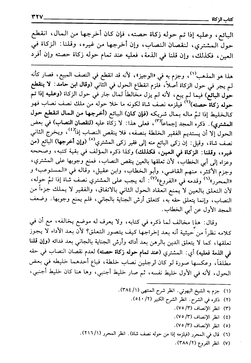 ـــــــــــــــــــــــــــــQهَذَا هُوَ الْمَذْهَبُ، وَجَزَمَ بِهِ فِي " الْوَجِيزِ "؛ لِأَنَّهُ قَدِ انْقَطَعَ فِي النِّصْفِ الْمَبِيعِ، فَصَارَ كَأَنَّهُ لَمْ يَجْرِ فِي حَوْلِ الزَّكَاةِ أَصْلًا، فَلَزِمَ انْقِطَاعُ الْحَوْلِ في الثَّانِي (وقَالَ ابْنُ حَامِدٍ: لَا يَنْقَطِعُ حَوْلُ الْبَائِعِ) فِيمَا لم يَبِعْ؛ لِأَنَّهُ لَمْ يَزَلْ مُخَالِطًا لِمَالٍ جَارٍ فِي حَوْلِ الزَّكَاةِ (وَعَلَيْهِ إِذَا تَمَّ حَوْلُهُ زَكَاةُ حِصَّتِهِ) فَيَلْزَمُهُ نِصْفُ شَاةٍ لِكَوْنِهِ مَا خَلَا حَوْلُهُ مِنْ مِلْكِ نِصْفِ نِصَابٍ، فَهُوَ كَالْخَلِيطِ إِذَا تَمَّ مَالُهُ بِمَالِ شَرِيكِهِ (فَإِنْ كَانَ) الْبَائِعُ (أَخْرَجَهَا مِنَ الْمَالِ انْقَطَعَ حَوْلُ الْمُشْتَرِي) ذَكَرَهُ الْمَجْدُ إِجْمَاعًا، فَعَلَى هَذَا: لَا زَكَاةَ عَلَيْهِ (لِنُقْصَانِ النِّصَابِ) فِي بَعْضِ الْحَوْلِ، إِلَّا أَنْ يَسْتَدِيمَ الْفَقِيرُ الْخُلْطَةَ بِنِصْفِهِ، فَلَا يَنْقُصُ النِّصَابَ إِذًا، وَيُخْرِجُ الثَّانِي نِصْفَ شَاةٍ، وَقِيلَ: إِنْ زَكَّى الْبَائِعُ مِنْهُ إِلَى فَقِيرِ زَكَّى الْمُشْتَرِي (وَإِنْ أَخْرَجَهَا) الْبَائِعُ (مِنْ غَيْرِهِ، وَقُلْنَا: الزَّكَاةُ فِي الْعَيْنِ، فَكَذَلِكَ) وَكَذَا ذَكَرَهُ الْمُؤَلِّفُ فِي بَقِيَّةِ كُتُبِهِ وَصَحَّحَهُ، وَعَزَاهُ إِلَى أَبِي الْخَطَّابِ؛ لِأَنَّ تَعَلُّقَهَا بِالْعَيْنِ يُنْقِصُ النِّصَابَ، فَمَنَعَ وُجُوبَهَا عَلَى الْمُشْتَرِي، وَجَزَمَ الْأَكْثَرُ مِنْهُمُ الْقَاضِي وَأَبُو الْخَطَّابِ وَابْنُ عَقِيلٍ، وَقَالَهُ فِي " الْمُسْتَوْعِبِ "، وَ " الْمُحَرَّرِ "، وَقَدَّمَهُ فِي " الْفُرُوعِ " أَنَّهُ يَجِبُ عَلَى الْمُشْتَرِي نِصْفُ شَاةٍ إِذَا تَمَّ حَوْلُهُ؛ لِأَنَّ التَّعَلُّقَ بِالْعَيْنِ لَا يَمْنَعُ انْعِقَادَ الْحَوْلِ الثَّانِي بِالِاتِّفَاقِ، وَالْفَقِيرُ لَا يَمْلِكُ جُزْءًا مِنَ النِّصَابِ، وَإِنَّمَا يَتَعَلَّقُ حَقُّهُ بِهِ كَتَعَلُّقِ أَرْشِ الْجِنَايَةِ بِالْجَانِي، فَلَمْ يَمْنَعْ وُجُوبَهَا، وَضَعَّفَ الْمَجْدُ الْأَوَّلَ عَنْ أَبِي الْخَطَّابِ.