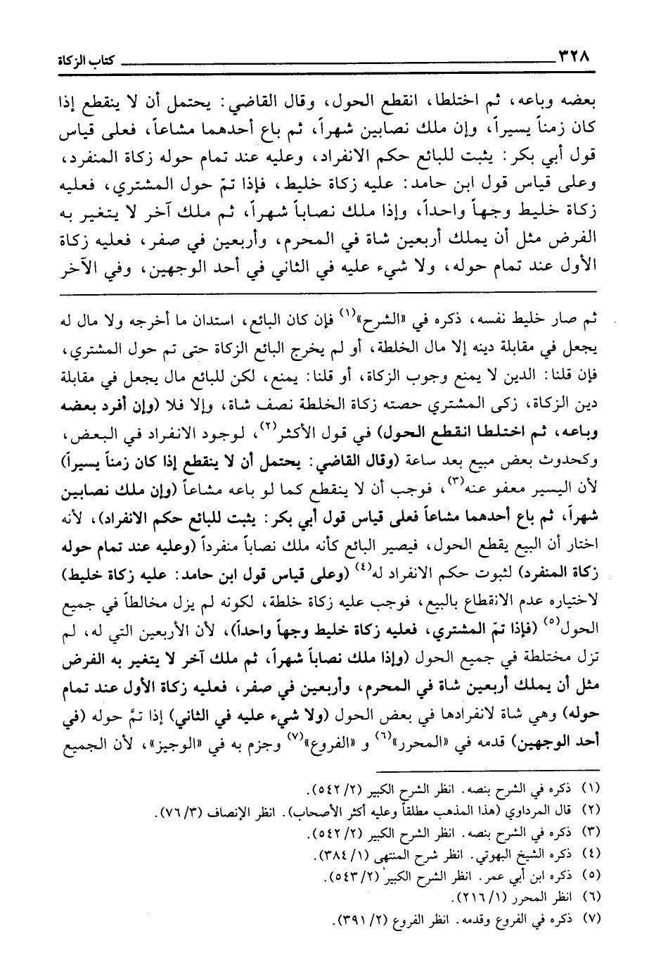 (وَإِنْ مَلَكَ نِصَابَيْنِ شَهْرًا، ثُمَّ بَاعَ أَحَدُهُمَا مُشَاعًا، فَعَلَى قِيَاسِ قَوْلِ أَبِي بَكْرٍ: يَثْبُتُ لِلْبَائِعِ حُكْمُ الِانْفِرَادِ) ؛ لِأَنَّهُ اخْتَارَ أَنَّ الْبَيْعَ يَقْطَعُ الْحَوْلَ، فَيَصِيرُ الْبَائِعُ كَأَنَّهُ مَلَكَ نِصَابًا مُنْفَرِدًا (وَعَلَيْهِ عِنْدَ تَمَامِ حَوْلِهِ زَكَاةُ الْمُنْفَرِدِ) لِثُبُوتِ حُكْمِ الِانْفِرَادِ لَهُ (وَعَلَى قِيَاسِ قَوْلِ ابْنِ حَامِدٍ: عَلَيْهِ زَكَاةُ خَلِيطٍ) لِاخْتِيَارِهِ عَدَمَ الِانْقِطَاعِ بِالْبَيْعِ، فَوَجَبَ عَلَيْهِ زَكَاةُ خُلْطَةٍ، لِكَوْنِهِ لَمْ يَزَلْ مُخَالِطًا فِي جَمِيعِ الْحَوْلِ (فَإِذَا تَمَّ حَوْلُ الْمُشْتَرِي فَعَلَيْهِ زَكَاةُ خَلِيطٍ وَجْهًا وَاحِدًا) ؛ لِأَنَّ الْأَرْبَعِينَ الَّتِي لَهُ لَمْ تَزَلْ مُخْتَلِطَةً فِي جَمِيعِ الْحَوْلِ.