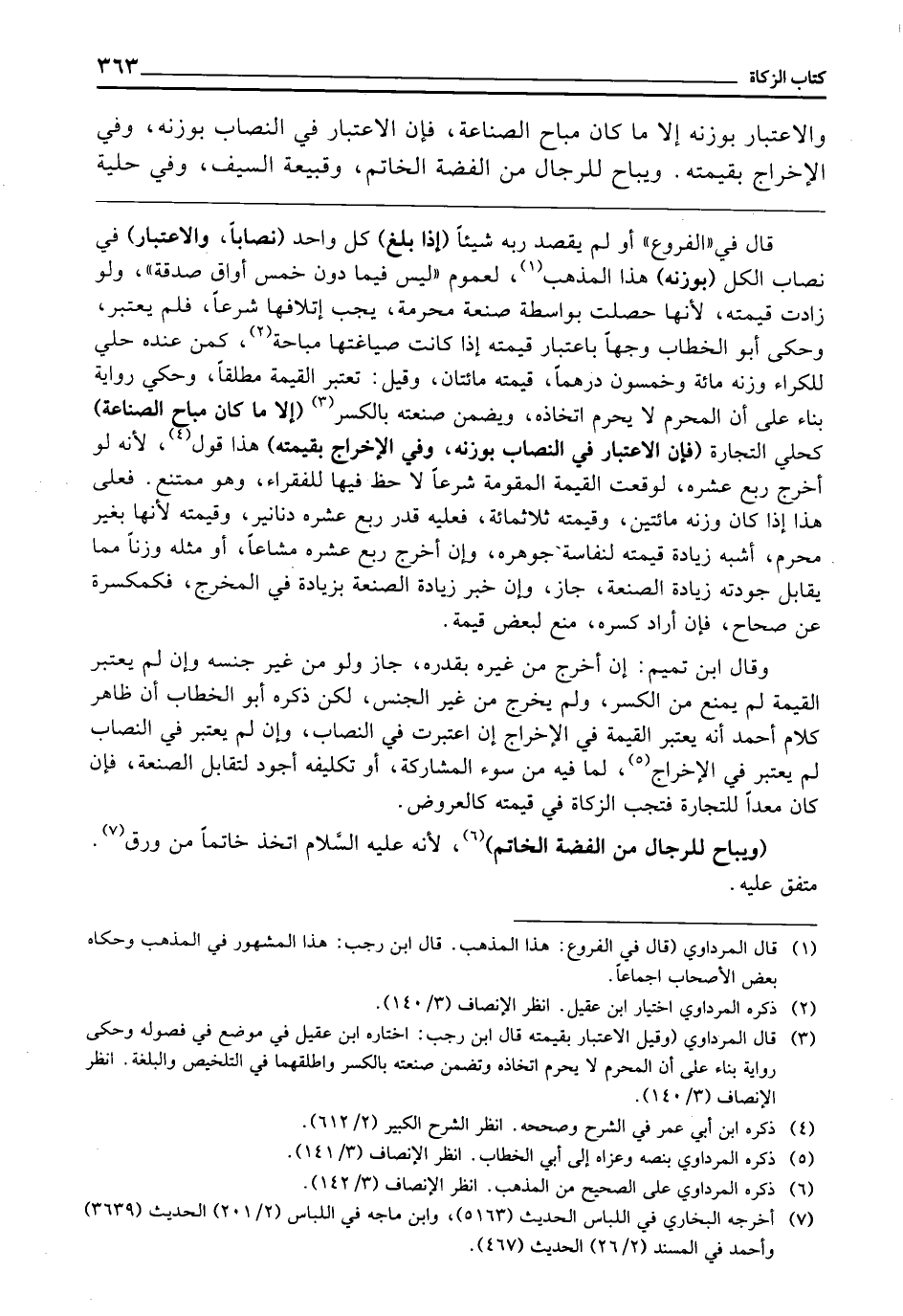 وَالِاعْتِبَارُ بِوَزْنِهِ إِلَّا مَا كَانَ مُبَاحَ الصِّنَاعَةِ، فَإِنَّ الِاعْتِبَارَ فِي النِّصَابِ بِوَزْنِهِ، وَفِي الْإِخْرَاجِ بِقِيمَتِهِ.
