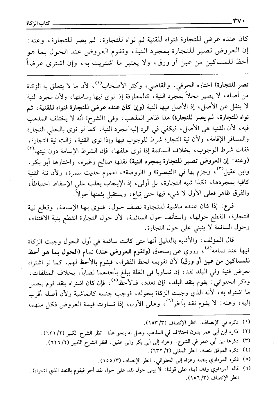 ـــــــــــــــــــــــــــــQتَصِرْ لِلتِّجَارَةِ) اخْتَارَهُ الْخِرَقِيُّ، وَالْقَاضِي، وَأَكْثَرُ الْأَصْحَابِ؛ لِأَنَّ مَا لَا يَتَعَلَّقُ بِهِ الزَّكَاةُ مِنْ أَصْلِهِ لَا يَصِيرُ مَحَلًّا بِمُجَرَّدِ النِّيَّةِ، كَالْمَعْلُوفَةِ إِذَا نَوَى فِيهَا إِسَامَتَهَا؛ وَلِأَنَّ مُجَرَّدَ النِّيَّةِ لَا يَنْقُلُ عَنِ الْأَصْلِ؛ إِذِ الْأَصْلُ فِيهَا النِّيَّةُ (وَإِنْ كَانَ عِنْدَهُ عَرَضٌ لِلتِّجَارَةِ فَنَوَاهُ لِلْقِنْيَةِ، ثُمَّ نَوَاهُ لِلتِّجَارَةِ، لَمْ يَصِرْ لِلتِّجَارَةِ) هَذَا ظَاهِرُ " الْمَذْهَبِ "، وَفِي " الشَّرْحِ " أَنَّهُ لَا يَخْتَلِفُ الْمَذْهَبُ فِيهِ؛ لِأَنَّ الْقِنْيَةَ هِيَ الْأَصْلُ، فَيَكْفِي فِي الرَّدِّ إِلَيْهِ مُجَرَّدُ النِّيَّةِ، كَمَا لَوْ نَوَى بِالْحُلِيِّ التِّجَارَةَ، وَالْمُسَافِرُ الْإِقَامَةَ؛ وَلِأَنَّ نِيَّةَ التِّجَارَةِ شَرْطٌ لِلْوُجُوبِ فِيهَا، وَإِذَا نَوَى الْقِنْيَةَ زَالَتْ نِيَّةُ التِّجَارَةِ، فَفَاتَ شَرْطُ الْوُجُوبِ، بِخِلَافِ السَّائِمَةِ إِذَا نَوَى عَلَفَهَا، فَإِنَّ الشَّرْطَ الْإِسَامَةُ دُونَ نِيَّتِهَا (وَعَنْهُ: إِنَّ الْعُرُوضَ تَصِيرُ لِلتِّجَارَةِ بِمُجَرَّدِ النِّيَّةِ) نَقَلَهَا صَالِحٌ وَغَيْرُهُ، وَاخْتَارَهَا أَبُو بَكْرٍ، وَابْنُ عَقِيلٍ، وَجَزَمَ بِهَا فِي " التَّبْصِرَةِ " " وَالرَّوْضَةِ " لِعُمُومِ حَدِيثِ سَمُرَةَ؛ وَلِأَنَّ نِيَّةَ الْقِنْيَةَ كَافِيَةٌ بِمَجْرَدِهَا، فَكَذَا شِبْهُ التِّجَارَةِ، بَلْ أَوْلَى؛ إِذْ الْإِيجَابُ يَغْلِبُ عَلَى الْإِسْقَاطِ احْتِيَاطًا، وَالْفَرْقُ ظَاهِرٌ، فَعَلَى الْأَوَّلِ لَا شَيْءَ فِيهَا حَتَّى تُبَاعَ، وَيُسْتَقْبَلَ بِثَمَنِهَا حَوْلًا.