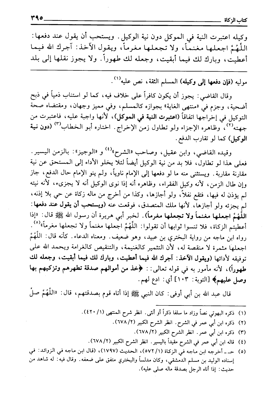 وَيُسْتَحَبُّ أَنْ يَقُولَ عِنْدَ دَفْعِهَا: اللَّهُمَّ اجْعَلْهَا مَغْنَمًا وَلَا تَجْعَلْهَا مَغْرَمًا، وَيَقُولُ الْآخِذُ: آجَرَكَ اللَّهُ فِيمَا أَعْطَيْتَ، وَبَارَكَ لَكَ فِيمَا أَبْقَيْتَ، وَجَعَلَهُ لَكَ طَهُورًا،