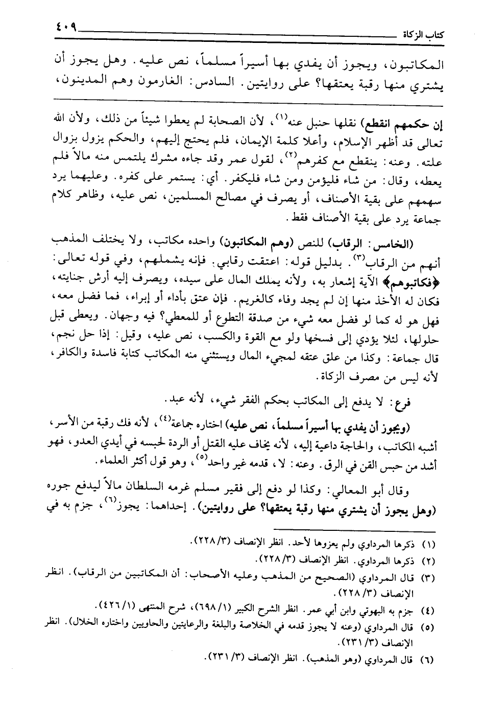 الْمُكَاتَبُونَ، وَيَجُوزُ أَنْ يَفْدِيَ بِهَا أَسِيرًا مُسْلِمًا، نَصَّ عَلَيْهِ، وَهَلْ يَجُوزُ أَنْ يَشْتَرِيَ مِنْهَا رَقَبَةً يُعْتِقُهَا؟ عَلَى رِوَايَتَيْنِ.