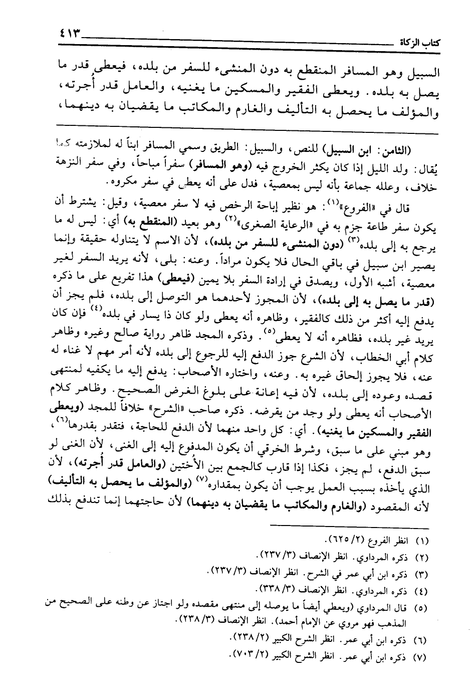 السَّبِيلِ وَهُوَ الْمُسَافِرُ الْمُنْقَطِعُ بِهِ دُونَ الْمُنْشِئِ لِلسَّفَرِ مِنْ بَلَدِهِ، فَيُعْطَى قَدْرَ مَا يَصِلُ بِهِ بَلَدَهُ.