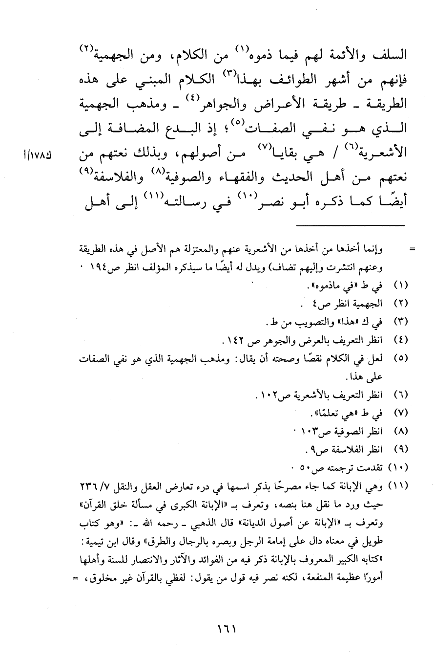 السلف والأئمة لهم فيما ذموه من الكلام ومن الجهمية فإنهم من أشهر الطوائف بهذا الكلام المبني على هذه الطريقة طريقة الأعراض والجواهر ومذهب الجهمية الذي هو نفي الصفات إذ البدع المضافة إلى الأشعرية هي بقايا من أصولهم وبذلك نعتهم من نعتهم من أهل الحديث والفقهاء والصوفية والفلاسفة أيضًا كما ذكره أبو نصر في رسالته إلى أهل