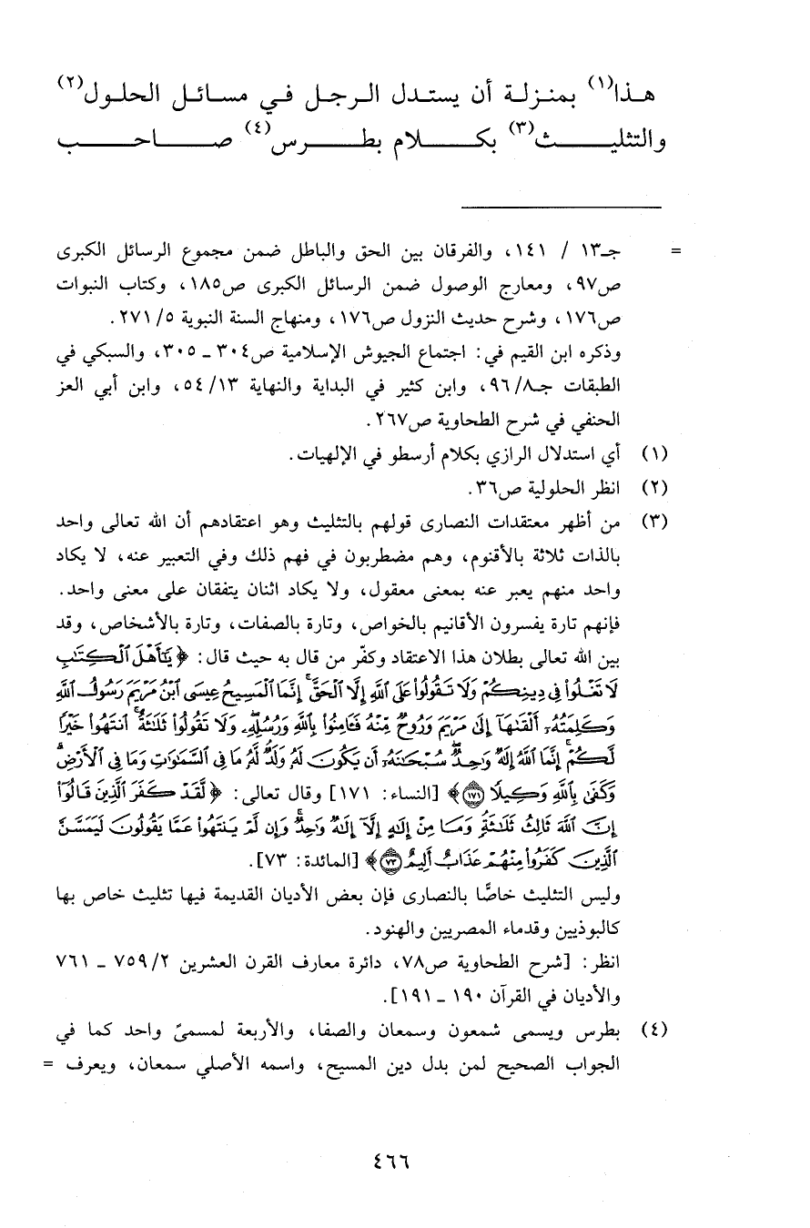 هذا بمنزلة أن يستدل الرجل في مسائل الحلول والتثليب بكلام بطرس صاحب