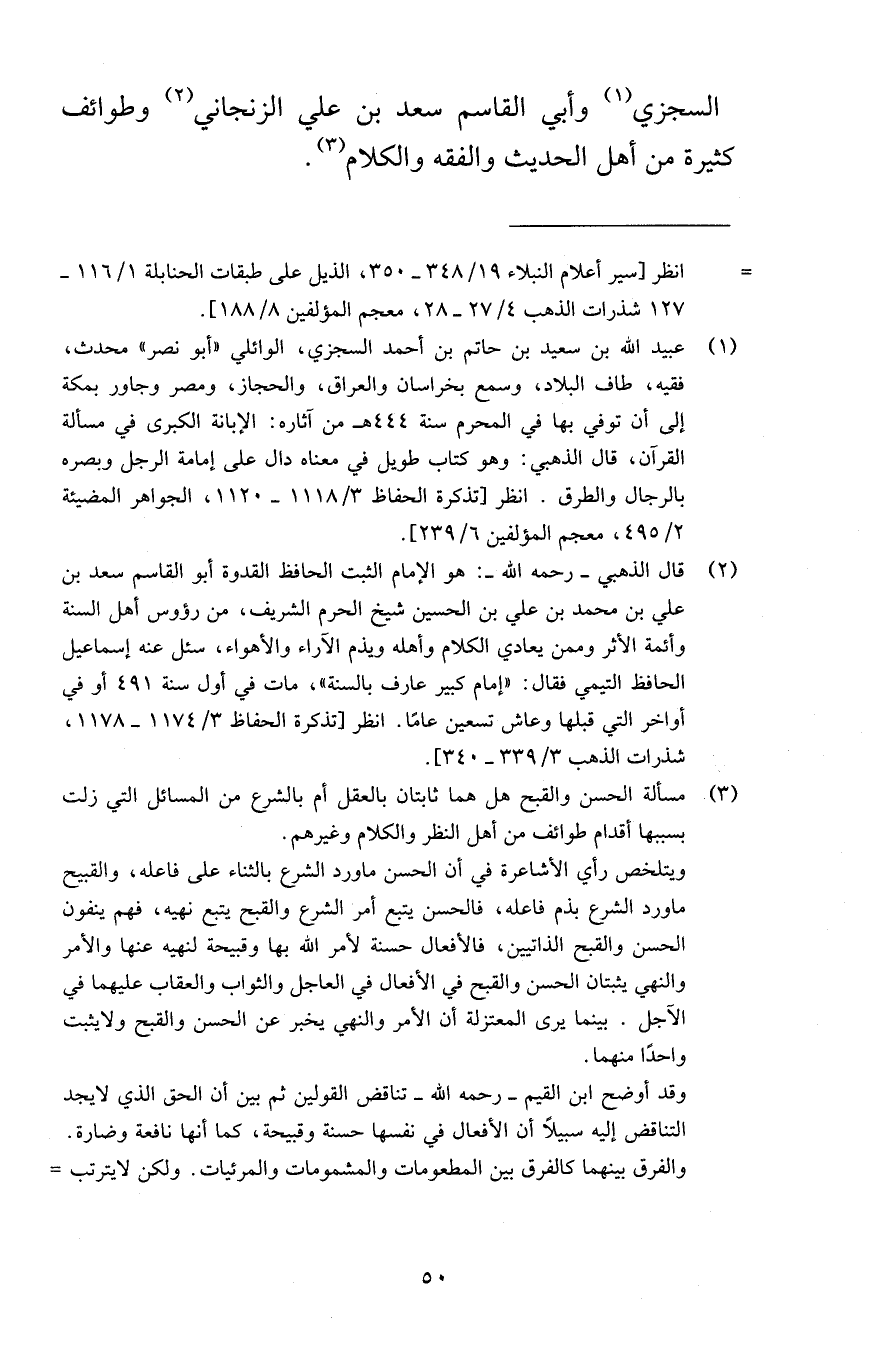 السجزي وأبي القاسم سعد بن علي الزنجاني وطوائف كثيرة من أهل الحديث والفقه والكلام
