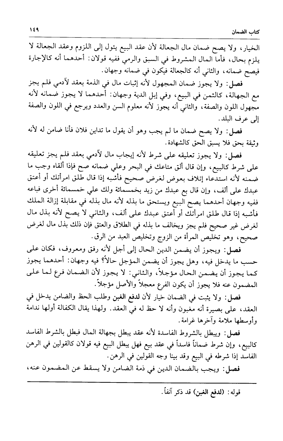 فصل: ويجب بالضمان الدين في ذمة الضامن ولا يسقط عن المضمون عنه
