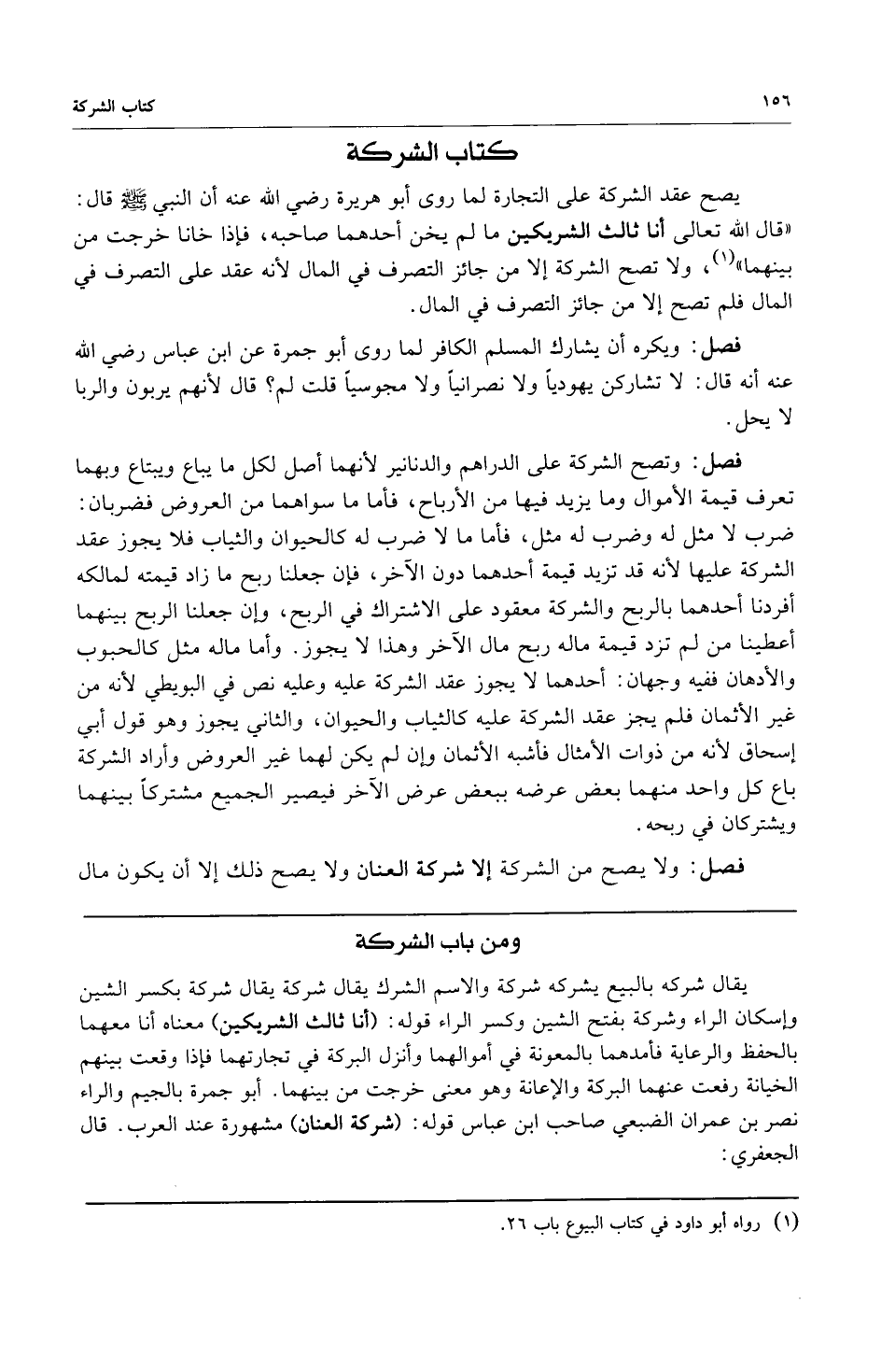 فصل: ويكره أن يشارك المسلم الكافر لما روى أبو جمرة عن ابن عباس رضي الله عنه أنه قال: لا تشاركن يهودياً ولا نصرانياً ولا مجوسياً قلت لم؟ قال لأنهم يربون والربا لا يحل.