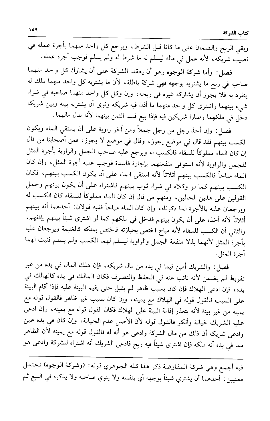 فصل: وأما شركة الوجوه وهو أن يعقدا الشركة على أن يشارك كل واحد منهما صاحبه في ربح ما يشتريه بوجهه فهي شركة باطلة لأن ما يشتريه كل واحد منهما ملك له ينفرد به فلا يجوز أن يشاركه غيره في ربحه وإن وكل كل واحد منهما صاحبه في شراء شيء بينهما واشترى كل واحد منهما ماأذن فيه شريكه ونوى أن يشتريه بينه وبين شريكه دخل في ملكهما وصارا شريكين فيه فإذا بيع قسم الثمن بينهما لأنه بدل مالهما.