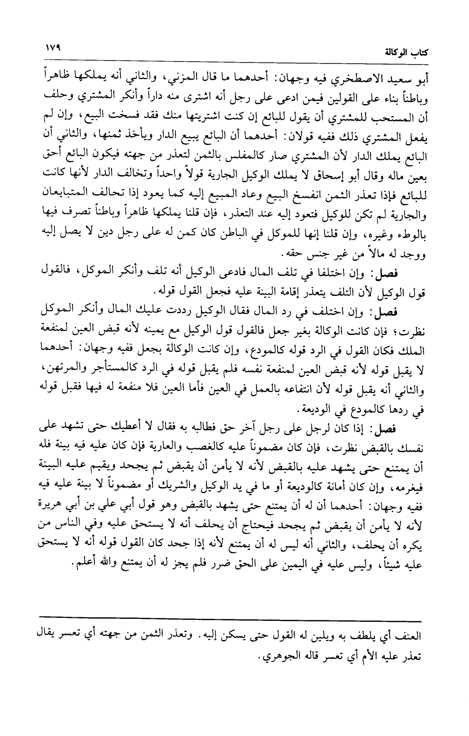 فصل: وإن اختلف في رد المال فقال رددت عليك المال وأنكر الموكل نظرت، فإن كانت الوكالة بغير جعل فالقول قول الوكيل مع يمينه لأنه فيض العين لمنفعة الملك فكان القول في الرد قول كالمودع، وإن كانت الوكالة بجعل ففيه وجهان: أحمدهما لا يقبل قوله لأنه قبض العين لمنفعة نفسه فلم يقبل قوله في الرد كالمستأجر والمرتهن، والثاني أنه يقبل قوله لأن انتفاعه بالعمل في العين فأما العين فلا منفعة له فيها فقبل قوله في ردها كالمودع في الوديعة.