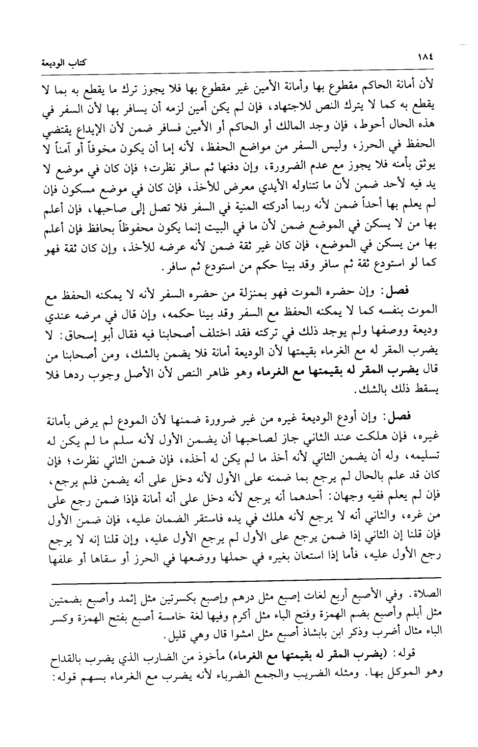 فصل: وإن حضره الموت فهو بمنزلة من حضره السفر لأنه لا يمكنه الحفظ مع الموت بنفسه كما لا يمكنه الحفظ مع السفر وقد بينا حكمه وإن قال في مرضه عندي وديعة ووصفها ولم يوجد ذلك في تركته فقد اختلف أصحابنا فيه فقال أبو إسحاق: لا يضرب المقر له مع الغرماء بقيمتها لأن الوديعة أمانة فلا يضمن بالشك ومن أصحابنا من قال يضرب المقر له بقيمتها مع الغرماء وهو ظاهر النص لأن الأصل وجوب ردها فلا يسقط ذلك بالشك.