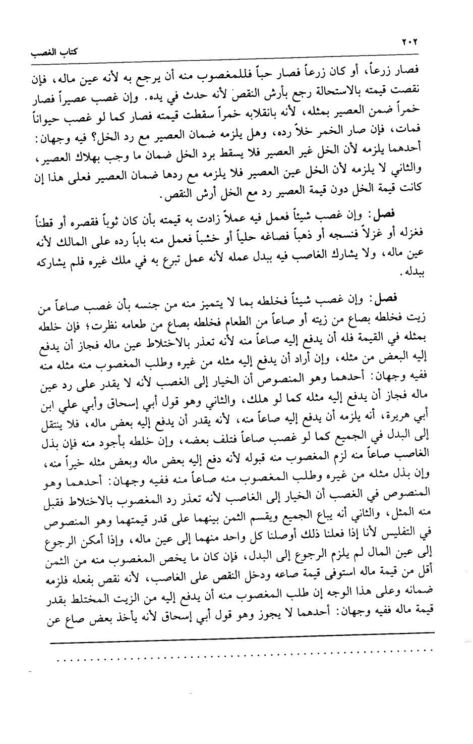 فصار زرعاً أو كان زرعاً فصار حباً فللمغصوب منه أن يرجع به لأنه عين ماله فإن نقصت قيمته بالاستحالة رجع بأرش النقص لأنه حدث في يده وإن غصب عصيراً فصار خمراً ضمن العصير بمثله لأنه بانقلابه خمراً سقطت قيمته فصار كما لو غصب حيواناً فمات فإن صار الخمر خلاً رده وهل يلزمه ضمان العصير مع رد الخل؟ فيه وجهان: أحدهما يلزمه لأن الخل غير العصير فلا يسقط برد الخل ضمان ما وجب بهلاك العصير والثاني لا يلزمه لأن الخل عين العصير فلا يلزمه مع ردها ضمان العصير فعلى هذا إن كانت قيمة الخل دون قيمة العصير رد مع الخل أرش النقص.
