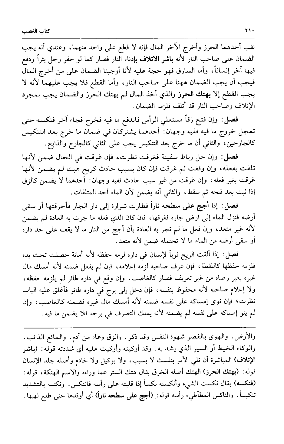 فصل: إذا أجج على سطحه ناراً فطارت شرارة إلى دار الجار فأحرقتها أو سقى أرضه فنزل الماء إلى أرض جاره فغرقها فإن كان الذي فعله ما جرت به العادة لم يضمن لأنه غير متعد وإن فعل ما لم تجر به العادة بأن أجج من النار ما لا يقف على حد داره أو سقى أرضه من الماء ما لا تحتمله ضمن لأنه متعد.