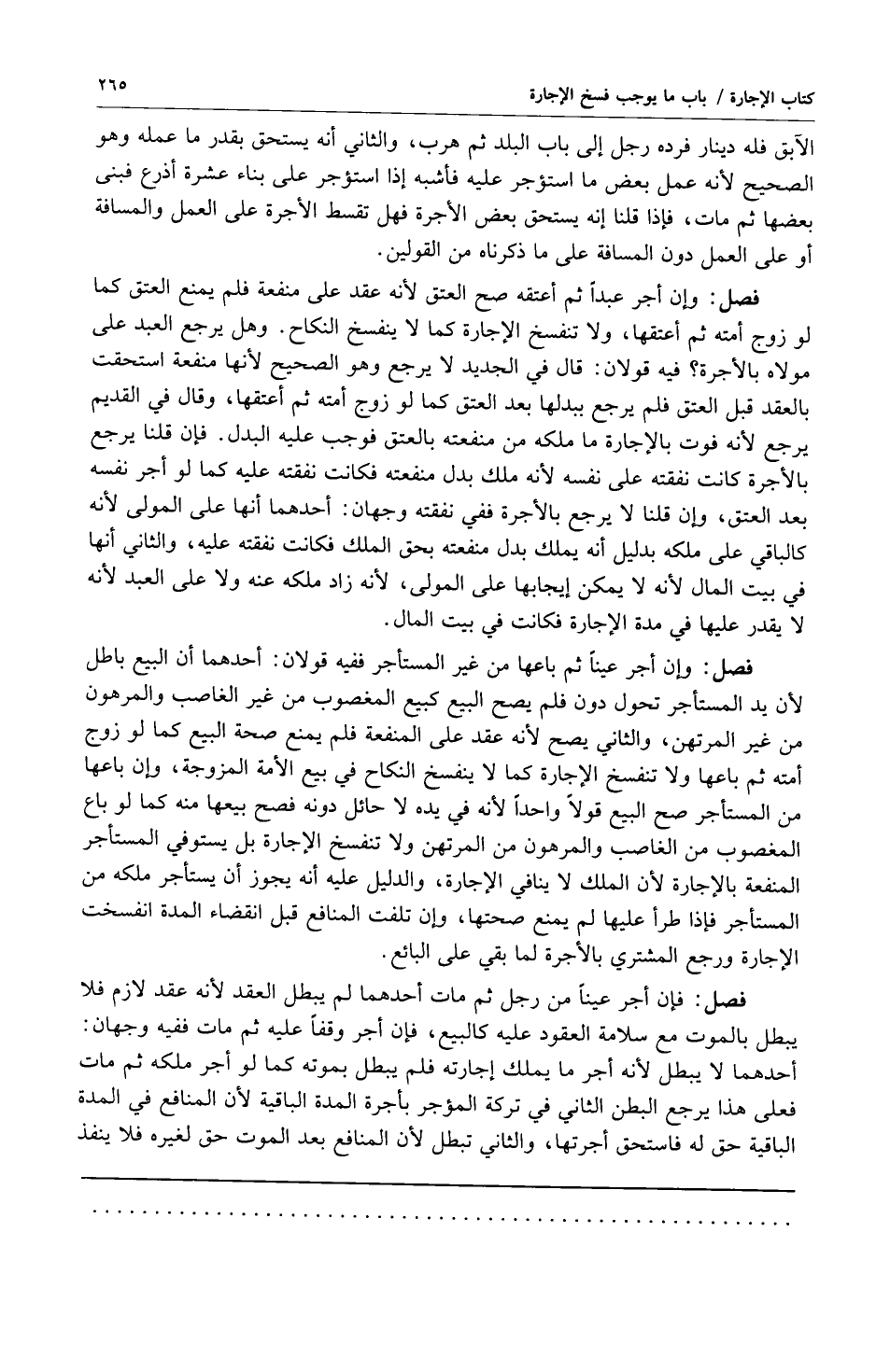فصل: فإن أجر عيناً من رجل ثم مات أحدهما لم يبطل العقد لأنه عقد لازم فلا يبطل بالموت مع سلامة العقود عليه كالبيع فإن أجر وقفاً عليه ثم مات ففيه وجهان: أحدهما لا يبطل لأنه أجر ما يملك إجارته فلم يبطل بموته كما لو أجر ملكه ثم مات فعلى هذا يرجع البطن الثاني في تركة المؤجر بأجرة المدة الباقية لأن المنافع في المدة الباقية حق له فاستحق أجرتها والثاني تبطل لأن المنافع بعد الموت حق لغيره فلا ينفذ