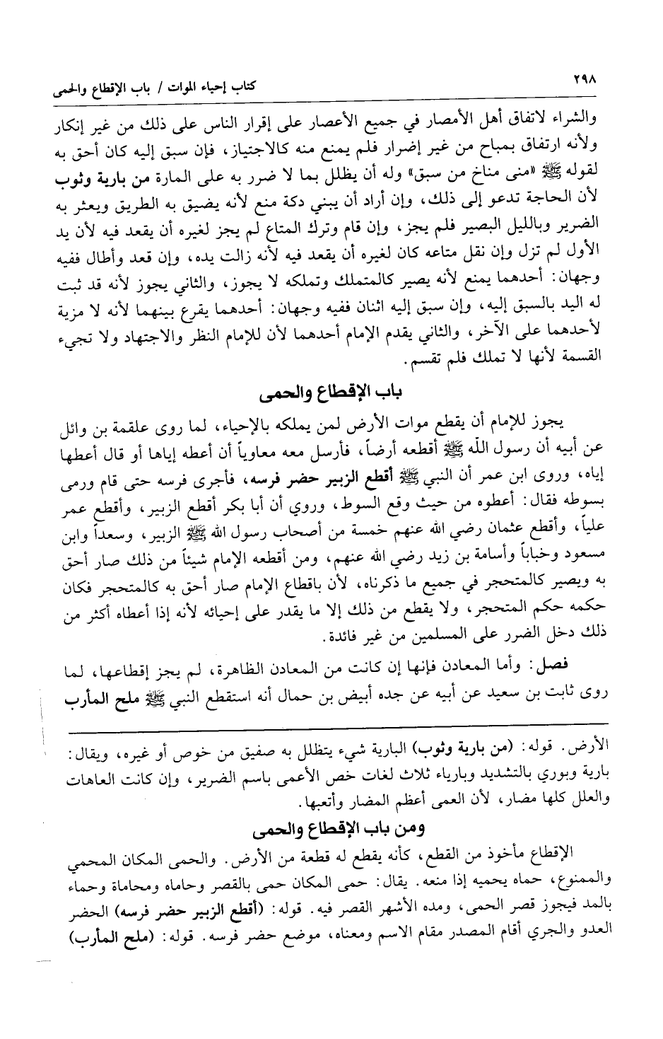 يجوز للأمام أن يقطع موات الأرض لمن يملكه بالإحياء لما روى علقمة بن وائل عن أبيه أن رسول الله صلى الله عليه وسلم أقطعه أرضاً فأرسل معه معاوياً أن أعطه إياها أو قال أعطها إياه وروى ابن عمر أن النبي صلى الله عليه وسلم أقطع الزبير حضر فرسه فأجرى فرسه حتى قام ورمى بسوطه فقال: أعطوه من حيث وقع السوط وروي أن أبو بكر أقطع الزبير وأقطع عمر علياً وأقطع عثمان رضي الله عنهم خمسة من أصحاب رسول الله صلى الله عليه وسلم الزبير وسعداً وابن مسعود وخباباً وأسامة بن زيد رضي الله عنهم ومن أقطعه الإمام شيئاً من ذلك صار أحق به ويصير كالمتحجر في جميع ما ذكرناه لأن بإقطاع الإمام صار أحق به كالمتحجر فكان حكمه حكم المتحجر ولا يقطع من ذلك إلا ما يقدر على إحيائه لأنه إذا أعطاه أكثر من ذلك دخل الضرر على المسلمين من غير فائدة.