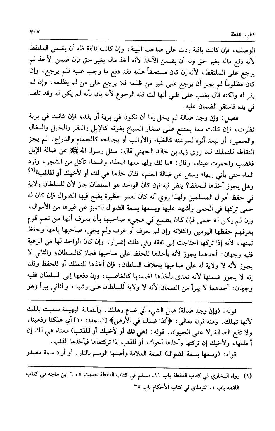 1 رواه البخاري في كتاب اللقطة باب 11. مسلم في كتاب اللقطة حديث 5، 6. ابن ماجة في كتاب اللقطة باب 1. الترمذي في كتاب الأحكام باب 35.