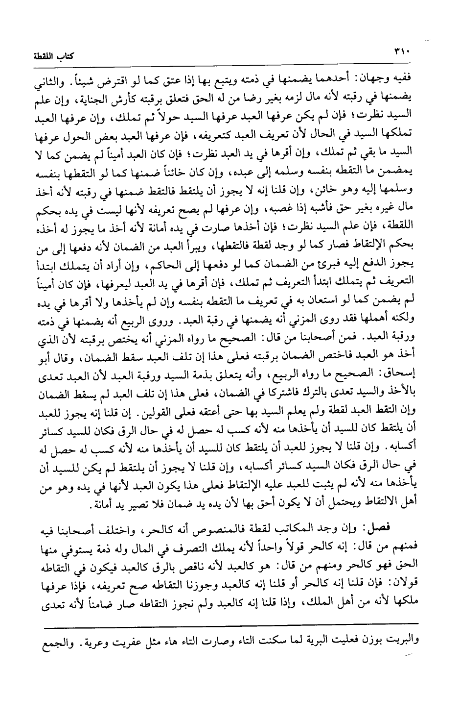 فصل: وإن وجد المكاتب لقطة فالمنصوص أنه كالحر واختلف أصحابنا فيه فمنهم من قال: إنه كالحر قولاً واحداً لأنه يملك التصرف في المال وله ذمة يستوفي منها الحق فهو كالحر ومنهم من قال: هو كالعبد لأنه ناقص بالرق كالعبد فيكون في التقاطه قولان: فإن قلنا إنه كالحر أو قلنا إنه كالعبد وجوزنا التقاطه صح تعريفه فإذا عرفها ملكها لأنه من أهل الملك وإذا قلنا إنه كالعبد ولم نجوز التقاطه صار ضامناً لأنه تعدى