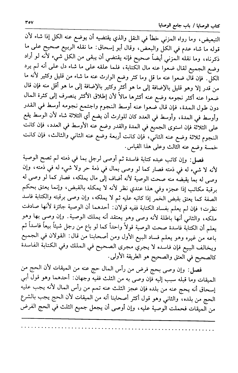 فصل: وإن كاتب عبده كتابة فاسدة ثم أوصى لرجل بما في ذمته لم تصح الوصية لأنه لا شيء له في ذمته فصار كما لو وصى بمال في ذمة حر ولا شيء له في ذمته وإن وصى له بما يقبضه منه صحت الوصية لأنه أضاف إلى مال يملكه فصار كما لو وصى له برقبة مكاتب إذا عجزه وفي هذا عندي نظر لأنه لا يملكه بالقبض وإنما يعتق بحكم الصفة كما يعتق بقبض الخمر إذا كاتبه عليه ثم لا يملكه وإن وصى برقبته والكتابة فاسد نظرت فإن لم يعلم بفساد الكتابة ففيه قولان: أحدهما أن الوصية جائزة لأنها صادفت ملكه والثاني أنها باطلة لأنه وصى وهو يعتقد أنه يملك الوصية وإن وصى بها وهو يعلم أن الكتابة فاسدة صحت الوصية قولاً واحداً كما لو باع من رجل شيئاً بيعاً فاسداً ثم باعه من غيره وهو يعلم فساد البيع الأول ومن أصحابنا من قال: القولان في الجميع ويخالف البيع فإن فاسده لا يجري مجرى الصحيح في الملك وفي الكتابة الفاسدة كالصحيح في العتق والصحيح هو الطريقة الأولى.