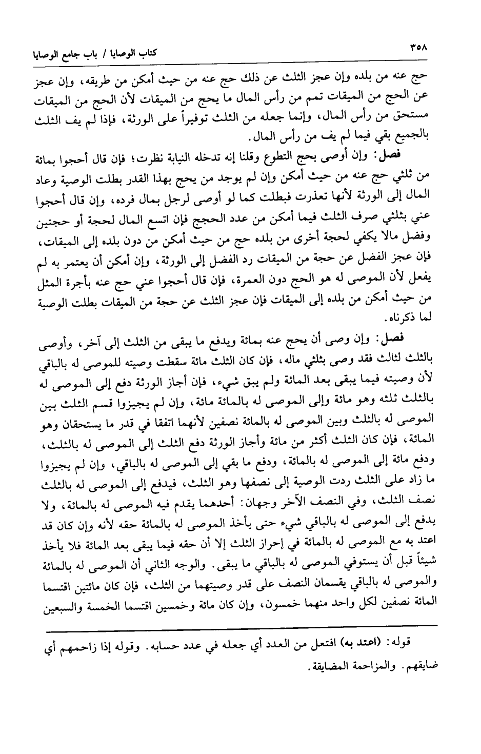 فصل: وإن وصى أن يحج عنه بمائة ويدفع ما يبقى من الثلث إلى آخر وأوصى بالثلث لثالث فقد وصى بثلثي ماله فإن كان الثلث مائة سقطت وصيته للموصى له بالباقي لأن وصيته فيما يبقى بعد المائة ولم يبق شيء فإن أجاز الورثة دفع إلى الموصى له بالثلث ثلثه وهو مائة وإلى الموصى له بالمائة مائة وإن لم يجيزوا قسم الثلث بين الموصى له بالثلث وبين الموصى له بالمائة نصفين لأنهما اتفقا في قدر ما يستحقان وهو المائة فإن كان الثلث أكثر من مائة وأجاز الورثة دفع الثلث إلى الموصى له بالثلث ودفع مائة إلى الموصى له بالمائة ودفع ما بقي إلى الموصى له بالباقي وإن لم يجيزوا ما زاد على الثلث ردت الوصية إلى نصفها وهو الثلث فيدفع إلى الموصى له بالثلث نصف الثلث وفي النصف الآخر وجهان: أحدهما يقدم فيه الموصى له بالمائة ولايدفع إلى الموصى له بالباقي شيء حتى يأخذ الموصى له بالمائة حقه وإن كان قد اعتد به مع الموصى له بالمائة في إحراز الثلث إلا أن حقه فيما يبقى بعد المائة فلا يأخذ شيئاً قبل أن يستوفي الموصى له بالباقي ما يبقى والوجه الثاني أن الموصى له بالمائة والموصى له بالباقي يقسمان النصف على قدر وصيتهما من الثلث فإن كانا مائتين اقتسما المائة نصفين لكل واحد منهما خمسون وإن كان مائة وخمسون اقتسما الخمسة والسبعين