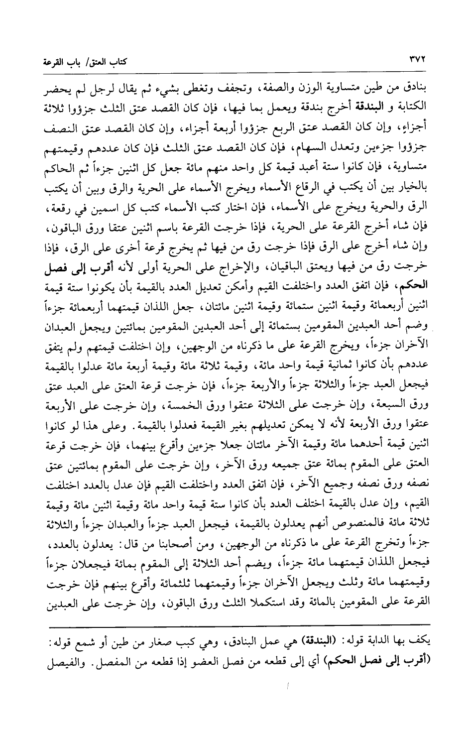 بنادق من طين متساوية الوزن والصفة وتجفف وتغطى بشيء ثم يقال لرجل لم يحضر الكتابة والبندقة أخرج بندقة ويعمل بما فيها فإن كان القصد عتق الثلث جزؤوا ثلاثة أجزاء وإن كان القصد عتق الرابع جزؤوا أربعة أجزاء وإن كان القصد عتق النصف جزؤوا نصفين وتعدل السهام فإن كان القصد عتق الثلث فإن كان عددهم وقيمته متساوية فإن كانوا ستة أعبد قيمة كل واحد منهم مائة جعل كل اثنين جزءاً ثم الحاكم بالخيار بين أن يكتب في الرقاع الأسماء ويخرج الأسماء على الحرية والرق وبين أن يكتب الرق والحرية ويخرج على الأسماء فإن اختار كتب الأسماء كتب كل اسمين في رقعة فإن شاء أخرج القرعة على الحرية فإذا خرجت القرعة باسم اثنين عتقا ورق الباقون وإن شاء أخرج على الرق فإن خرجت رق من فيها ثم يخرج قرعة أخرى على الرق فإذا خرجت رق من فيها ويعتق الباقيان والإخراج على الحرية أولى لأنه أقرب إلى فصل الحكم فإن اتفق العدد واختلفت القيم وأمكن تعديل العدد بالقيمة بأن يكونوا ستة قيمة اثنين أربعمائة وقيمة اثنين ستمائة وقيمة اثنين مائتان جعل اللذان قيمتهما أربعمائة جزءاً وضم أحد العبدين المقومين بستمائة إلى أحد العبدين المقومين بمائتين ويجعل العبدان الآخران جزءاً ويخرج القرعة على ما ذكرناه من الوجهين وإن اختلفت قيمتهم ولم يتفق عددهم بأن كانوا ثمانية قيمة واحد مائة وقيمة ثلاثة مائة وقيمة أربعة مائة عدلوا بالقيمة فيجعل العبد جزءاً والثلاثة جزءاً والأربعة جزءاً فإن خرجت قرعة العتق على العبد عتق ورق السبعة وإن خرجت على الثلاثة عتقوا ورق الخمسة وإن خرجت على الأربعة عتقوا ورق الأربعة لأنه لا يمكن تعديلهم بغير القيمة فعدلوا بالقيمة وعلى هذا لو كانوا اثنين قيمة أحدهما مائة وقيمة الآخر مائتان جعلا جزأين وأقرع بينهما فإن خرجت قرعة العتق على المقوم بمائة عتق جميعه ورق الآخر وإن خرجت على المقوم بمائتين عتق نصفه ورق نصفه وجميع الآخر فإن اتفق العدد واختلفت القيم فإن عدل بالعدد اختلفت القيم وإن عدل بالقيمة اختلف العدد بأن كانوا ستة قيمة واحد مائة وقيمة اثنين مائة وقيمة ثلاثة مائة فالمنصوص أنهم يعدلون بالقيمة فيجعل العبد جزءاً والعبدان جزءاً والثلاثة جزءاً وتخرج القرعة على ما ذكرناه من الوجهين ومن أصحابنا من قال: يعدلون بالعدد فيجعل اللذان قيمتهما مائة جزءاً ويضم أحد الثلاثة إلى المقوم بمائة فيجعلان جزءاً وقيمتهما مائة وثلث ويجعل الآخران جزءاً وقيمتهما ثلثمائة وأقرع بينهم فإن خرجت القرعة على المقومين بالمائة وقد استكملا الثلث ورق الباقون وإن خرجت على العبدين