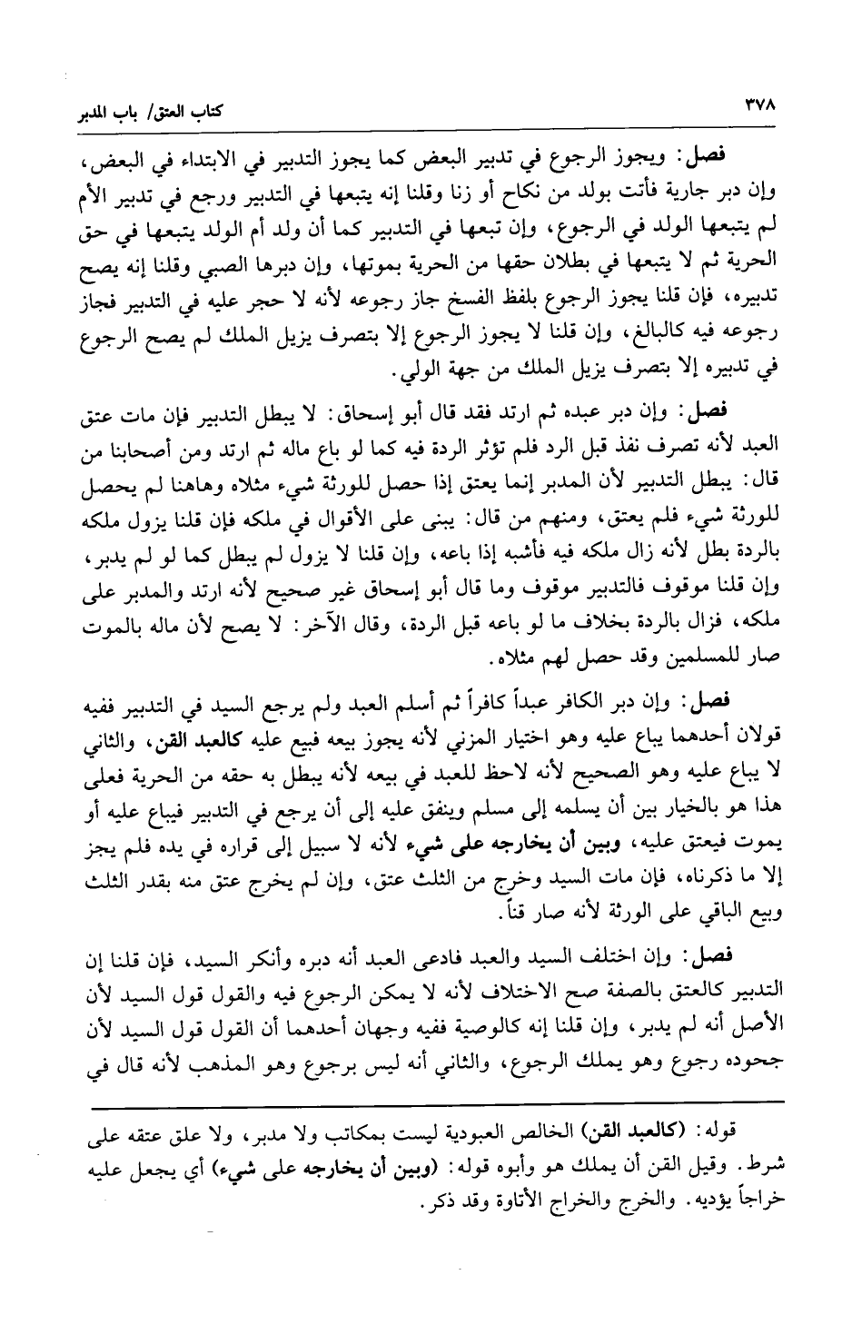 فصل: وإن دبر الكافر عبداً كافراً ثم أسلم العبد ولم يرجع السيد في التدبير ففيه قولان: أحدهما يباع عليه وهو اختيار المزني لأنه يجوز بيعه فبيع عليه كالعبد القن والثاني لا يباع عليه وهو الصحيح لأنه لا حظ للعبد في بيعه لأنه يبطل به حقه من الحرية فعلى هذا هو بالخيار بين أن يسلمه إلى مسلم وينفق عليه إلى أن يرجع في التدبير فيباع عليه أو يموت فيعتق عليه وبين أن يخارجه على شيء لأنه لا سبيل إلى قراره في يده فلم يجز إلا ما ذكرناه فإن مات السيد وخرج من الثلث عتق وإن لم يخرج عتق منه بقدر الثلث وبيع الباقي على الورثة لأنه صار قناً.