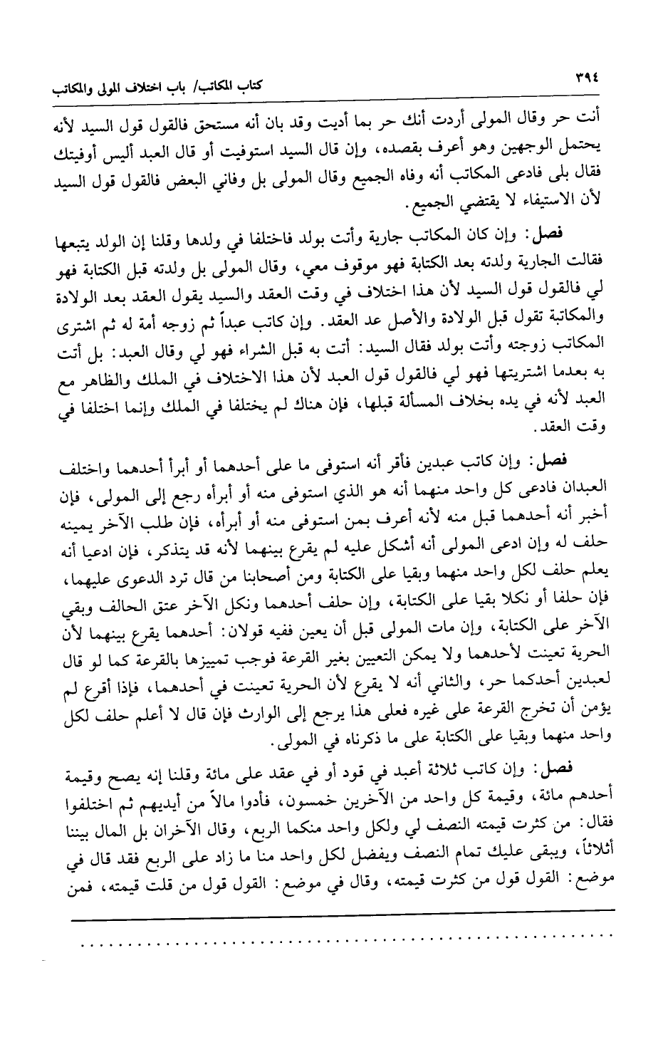 فصل: وإن كاتب ثلاثة أعبد في قود أو في عقد على مائة وقلنا إنه يصح وقيمة أحدهم مائة وقيمة كل واحد من الآخرين خمسون فأدوا مالاً من أيديهم ثم اختلفوا فقال: من كثرت قيمته النصف لي ولكل واحد منهما الربع وقال الآخران بل المال بيننا أثلاثاً ويبقى عليك تمام النصف ويفضل لكل واحد منا ما زاد على الربع فقد قال في موضع: القول قول من كثرت قيمته وقال في موضع: القول قول من قلت قيمته فمن