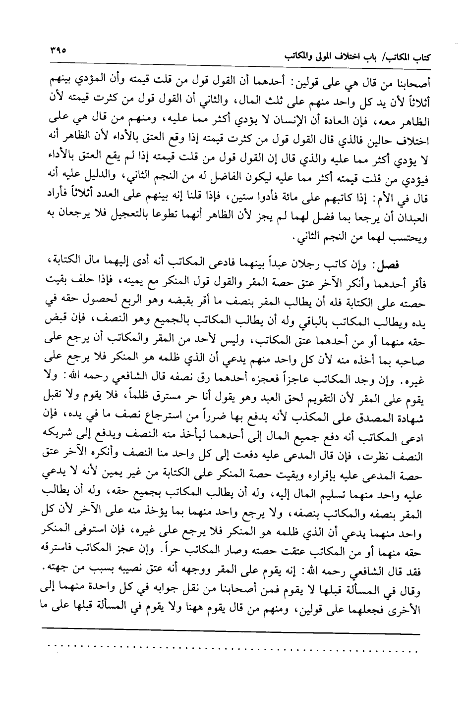فصل: وإن كاتب رجلان عبداً بينهما فادعى المكاتب أنه أدى إليهما مال الكتابة فأقر أحدهما وأنكر الآخر عتق الحصة المقر والقول قول المنكر مع يمينه فإذا حلف بقيت حصته على الكتابة فله أن يطالب المقر بنصف ما أقر بقبضه وهو الربع لحصول حقه في يده ويطالب المكاتب بالباقي وله أن يطالب المكاتب بالجميع وهو النصف فإن قبض حقه منهما أو من أحدهما عتق المكاتب وليس لأحد من المقر والمكاتب أن يرجع على صاحبه بما أخذه منه لأن كل واحد منهم يدعي أن الذي ظلمه هو المنكر فلا يرجع على غيره وإن وجد المكاتب عاجزاً فعجزه أحدهما رق نصفه قال الشافعي رحمه الله: ولا يقوم على المقر لأن التقويم لحق العبد وهو أن يقول أنا حر مسترق ظلماً فلا يقوم ولا تقبل شهادة المصدق على المكذب لأنه يدفع بها ضرراً من استرجاع نصف ما في يده فإن ادعى المكاتب أنه دفع جميع المال إلى أحدهما ليأخذ منه النصف ويدفع إلى شريكه النصف نظرت فإن قال المدعى عليه دفعت إلى كل واحد منا النصف وأنكره الآخر عتق حصة المدعى عليه بإقراره وبقيت حصة المنكر على الكتابة من غير يمين لأنه لا يدعي عليه واحد منهما تسليم المال إليه وله أن يطالب المكاتب بجميع حقه وله أن يطالب المقر بنصفه والمكاتب بنصفه ولا يرجع واحد منهما بما يؤخذ منه على الآخر لأن كل واحد منهما يدعي أن الذي ظلمه هو المنكر فلا يرجع على غيره فإن استوفى المنكر حقه منهما أو من المكاتب عتقت حصته وصار المكاتب حراً وإن عجز المكاتب فاسترقه فقد قال الشافعي رحمه الله: إنه يقوم على المقر ووجهه أنه عتق نصيبه بسبب من جهته وقال في المسألة قلها لا يقوم فمن أصحابنا من نقل جوابه في كل واحدة منهما إلى الأخرى فجعلهما على قولين ومنهم من قال يقوم ههنا ولا يقوم في المسألة قبلها على ما