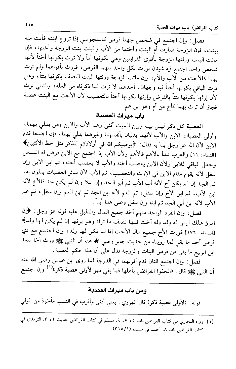 1 رواه البخاري في كتاب الفرائض باب 5، 7، 9. مسلم في كتاب الفرائض حديث 2، 3. الترمذي في كتاب الفرائض باب 8. أحمد في مسنده "1/315".