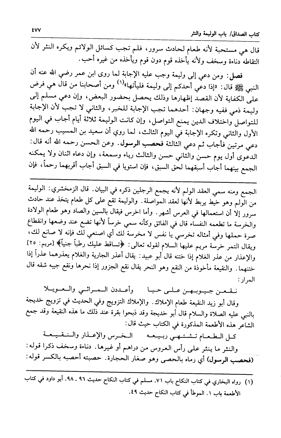 1 رواه البخاري في كتاب النكاح باب 71. مسلم في كتتتاب النكاح حديث 96 - 98. أبو داود في كتاب الأطعمة باب 1. الموطأ في كتاب النكاح حديث 49.