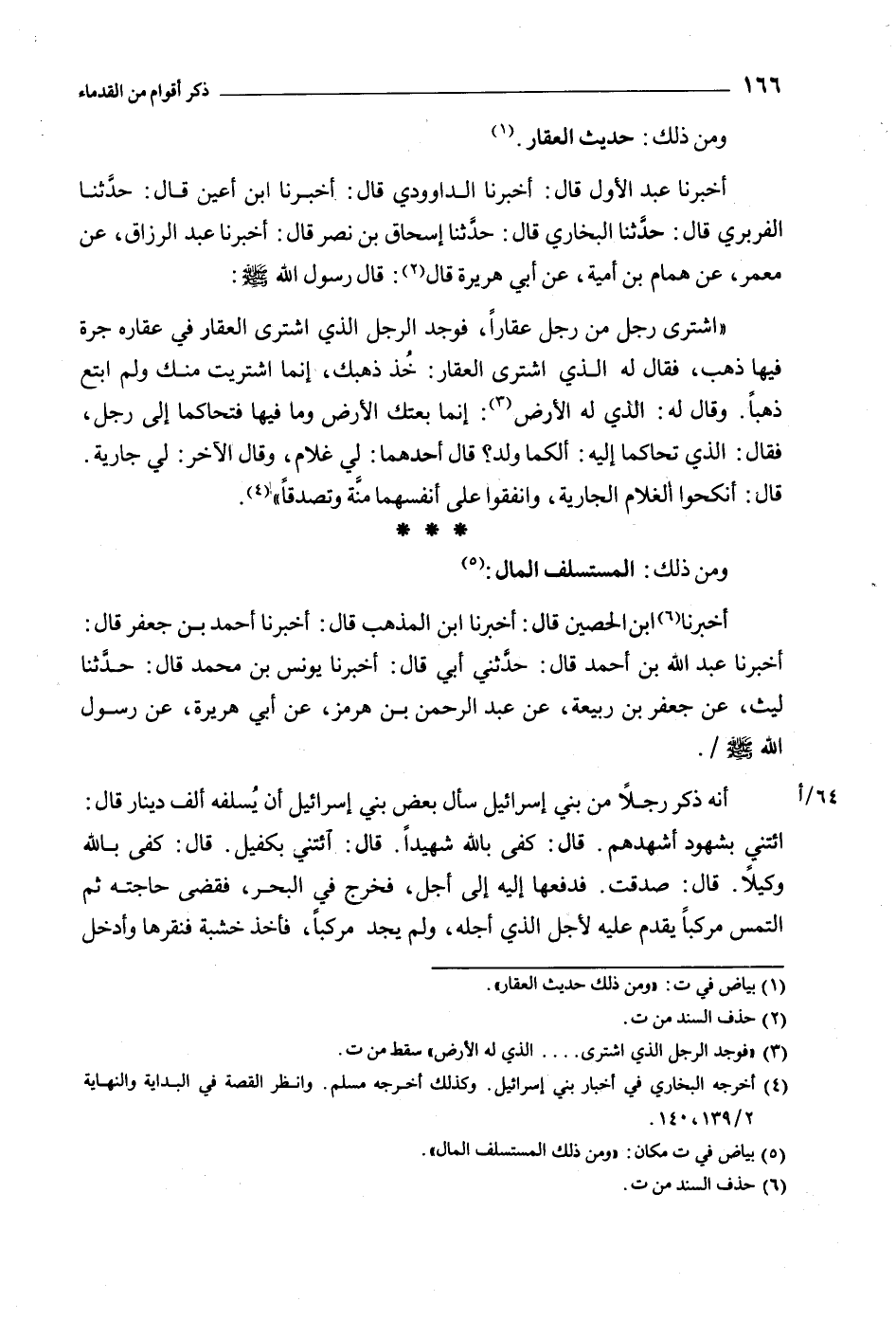 أَنَّهُ ذكر رَجُلا مِنْ بَنِي إِسْرَائِيلَ سَأَلَ بَعْضَ بَنِي إِسْرَائِيلَ أَنْ يُسْلِفَهُ أَلْفَ دِينَارٍ قَالَ: