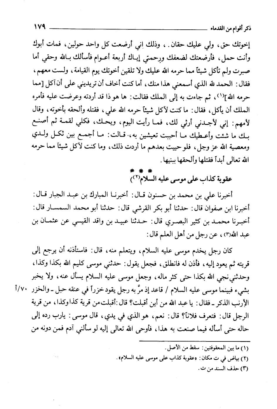[2] بياض في ت مكان: «عقوبة كذاب على موسى عليه السلام» .