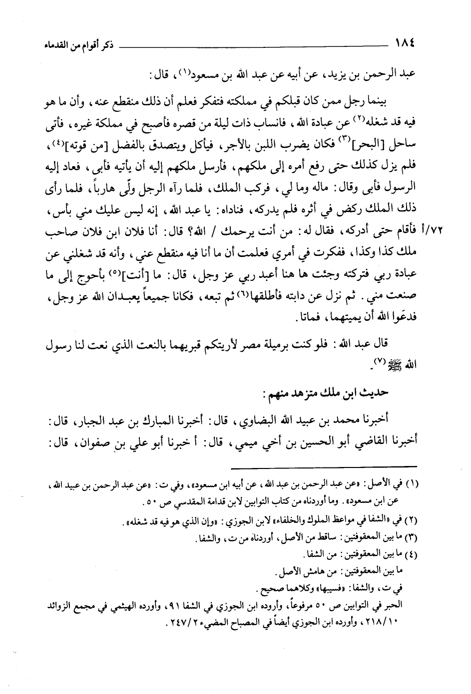 . حديث ابن ملك متزهد منهم: