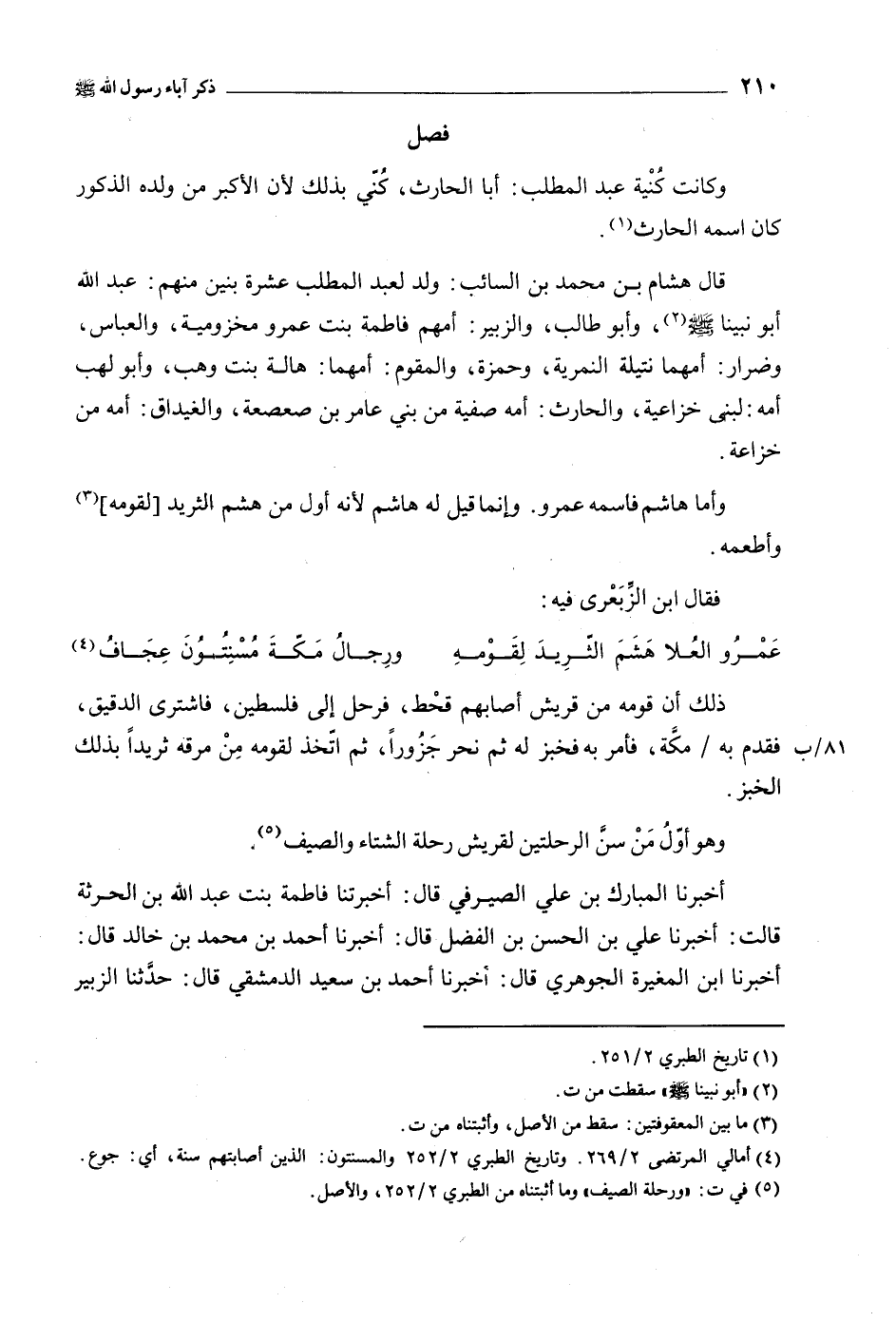 [4] أمالي المرتضى 2/ 269. وتاريخ الطبري 2/ 252 والمسنتون: الذين أصابتهم سنة، أي: جوع.