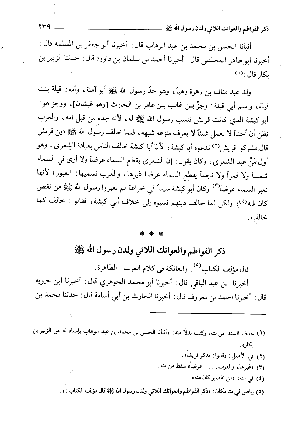 [5] بياض في ت مكان: «ذكر الفواطم والعواتك اللائي ولدن رَسُولَ اللَّه صَلَّى اللَّهُ عَلَيْهِ وَسَلَّمَ قَالَ مؤلف الكتاب:» .