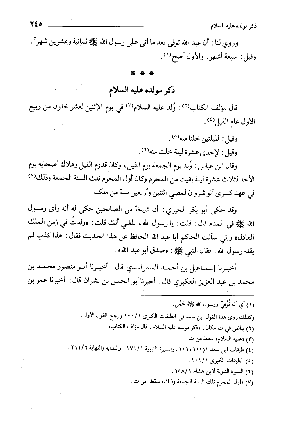قَالَ مؤلف الكتاب [2] : ولد عَلَيْهِ السلام [3] فِي يوم الاثنين لعشر خلون من ربيع الأول عام الفيل [4] .