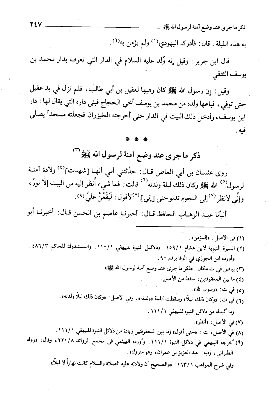 [3] بياض في ت مكان: «ذكر ما جرى عند وضع آمنة لرسول الله صَلَّى اللَّهُ عَلَيْهِ وَسَلَّمَ» .