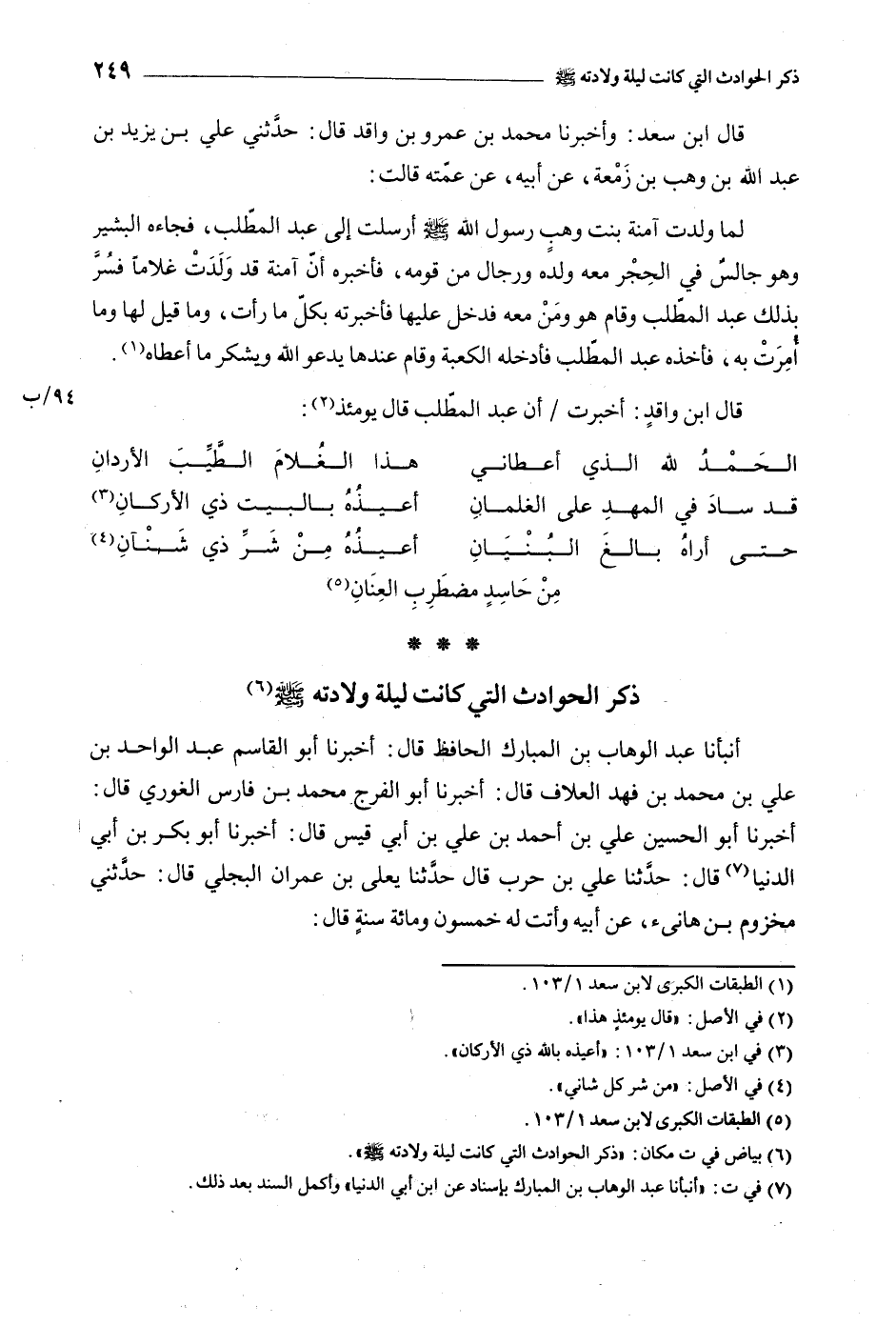 [6] بياض في ت مكان: «ذكر الحوادث التي كانت ليلة ولادته صلى الله عليه وسلم» .