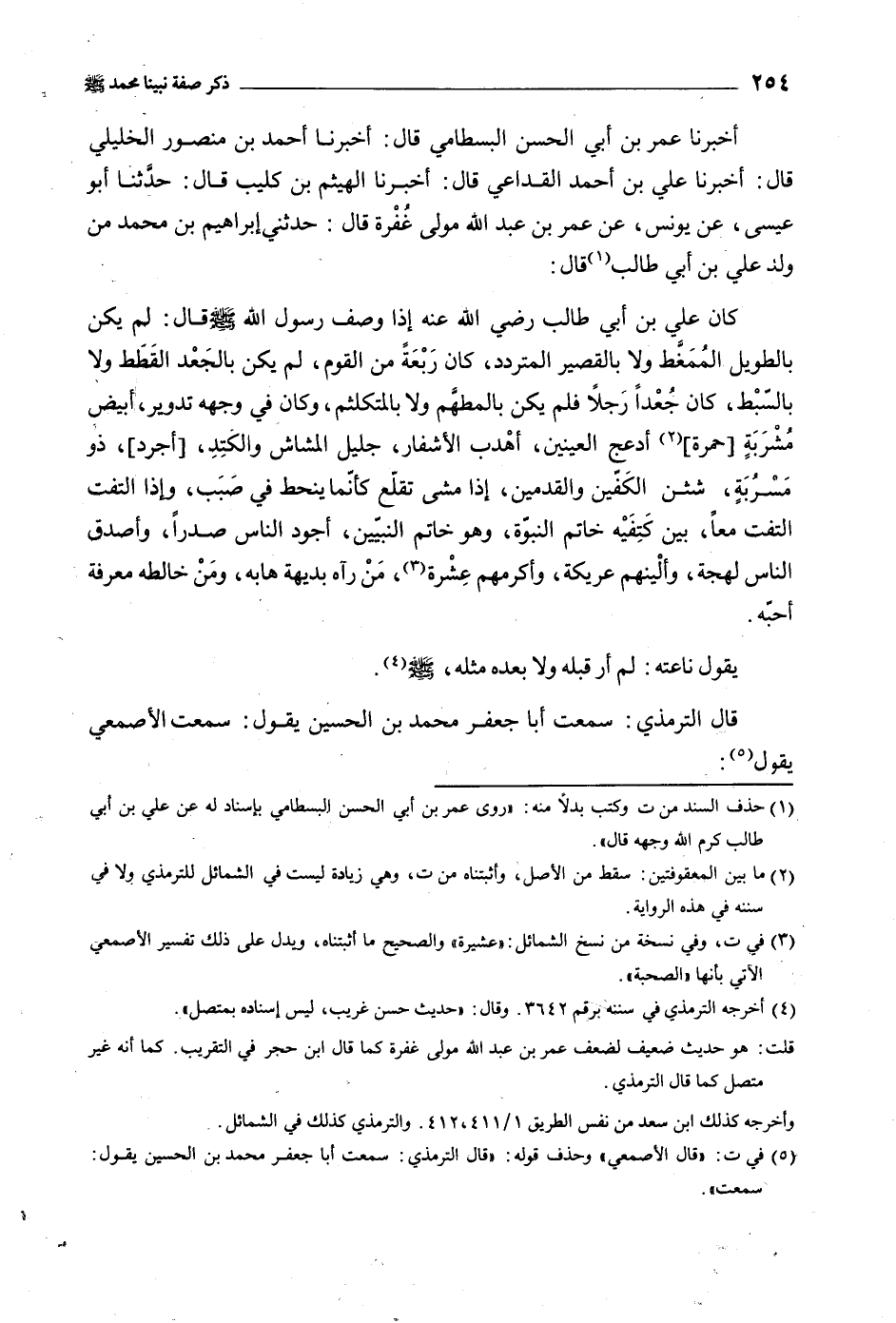 يقول ناعته: لم أر قبله ولا بعده مثله، صلى الله عليه وسلم [4] . قَالَ الترمذي: سمعت أبا جعفر مُحَمَّد بْن الحسين يقول: سمعت الأصمعي يقول [5] :