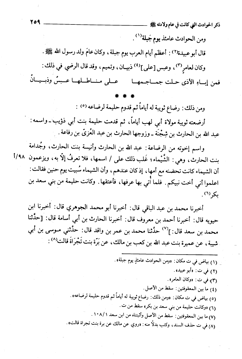 [5] بياض في ت مكان: «ومن ذلك: رضاع ثويبة له أياما ثم قدوم حليمة لرضاعه» .