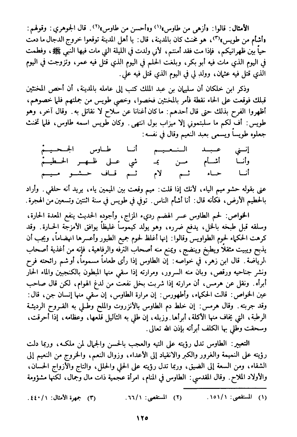 : قالوا: «أزهى من طاوس» «1» و «أحسن من طاوس» «2» . قال الجوهري: وقولهم: