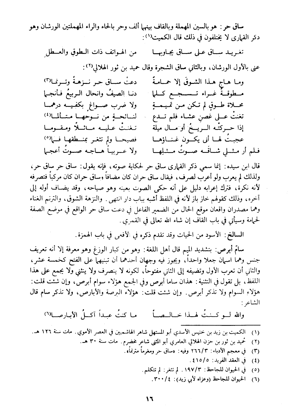 هو بالسين المهملة وبالقاف بينهما ألف وحر بالحاء والراء المهملتين الورشان وهو ذكر القمارى لا يختلفون في ذلك قال الكميت «1» :