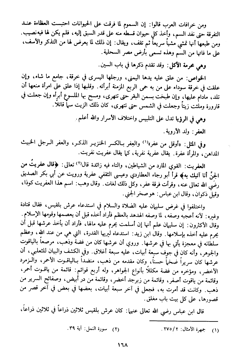 : «أوقل من عفر» «1» والعفر بالكسر الخنزير الذكر، والعفر الرجل الخبيث المداهن، والمرأة عفرة. يقال عفرية نفرية، كما يقال عفريت نفريت.