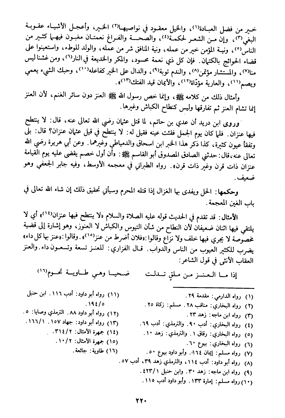 وأمثال ذلك من كلامه صلى الله عليه وسلم، وإنما خص رسول الله صلى الله عليه وسلم العنز دون سائر الغنم، لأن العنز إنما تشام العنز ثم تفارقها وليس كنطاح الكباش وغيرها.