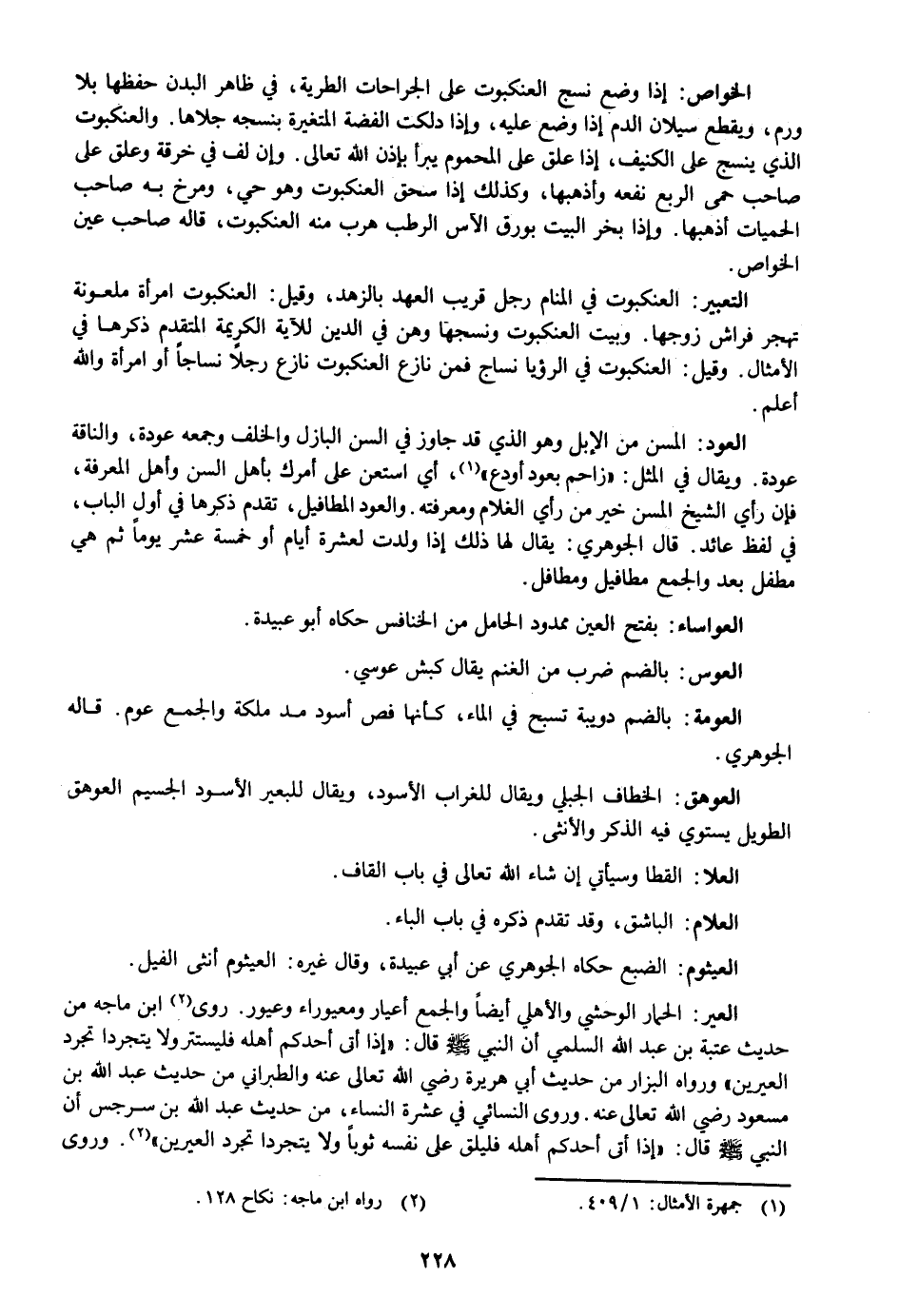 الحمار الوحشي والأهلي أيضا والجمع أعيار ومعيوراء وعيور. روى «2» ابن ماجه من حديث عتبة بن عبد الله السلمي أن النبي صلى الله عليه وسلم قال: «إذا أتى أحدكم أهله فليستتر ولا يتجردا تجرد العيرين» ورواه البزار من حديث أبي هريرة رضي الله تعالى عنه والطبراني من حديث عبد الله بن مسعود رضي الله تعالى عنه. وروى النسائي في عشرة النساء، من حديث عبد الله بن سرجس أن النبي صلى الله عليه وسلم قال: «إذا أتى أحدكم أهله فليلق على نفسه ثوبا ولا يتجردا تجرد العيرين» «3» . وروى