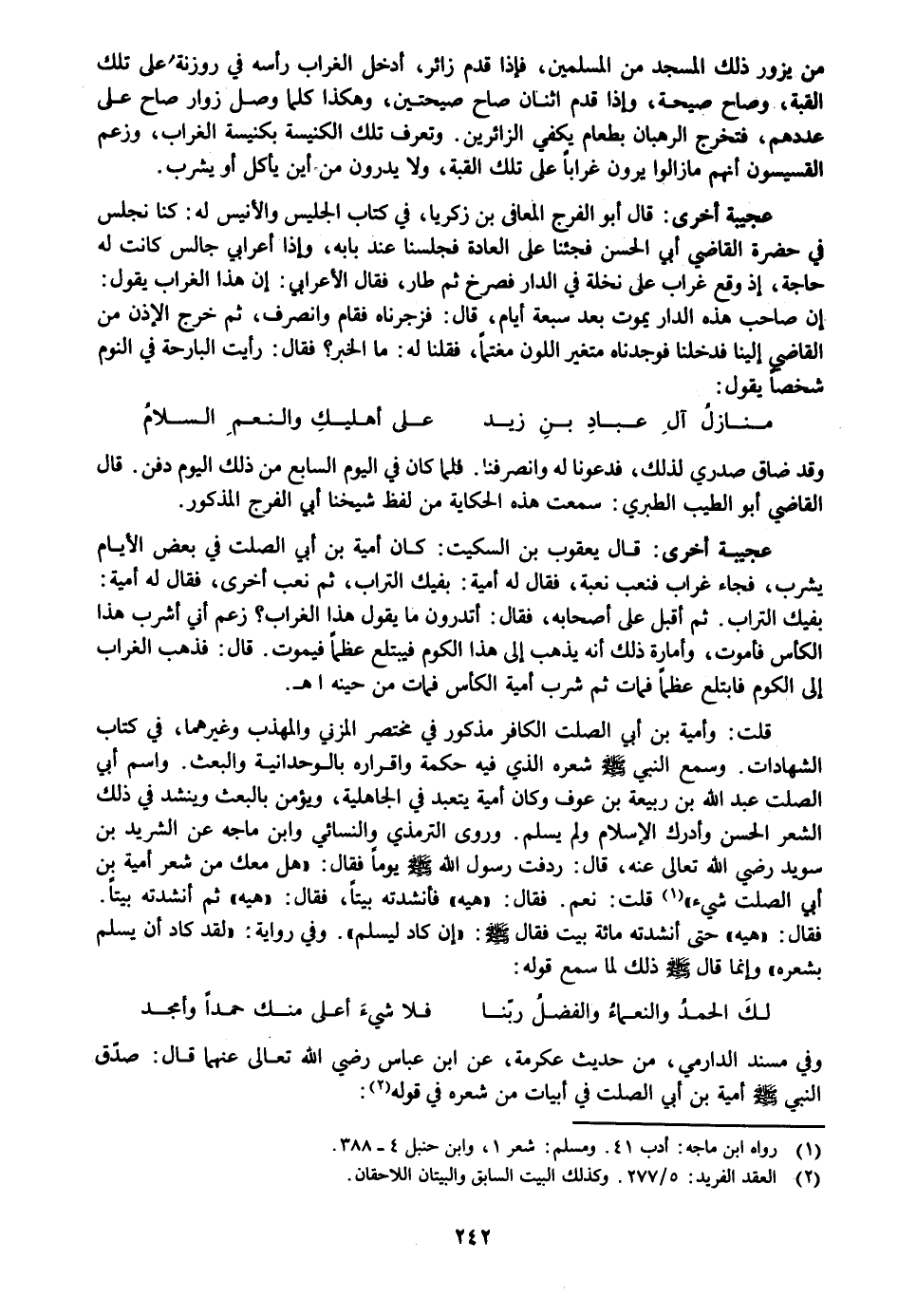وفي مسند الدارمي، من حديث عكرمة، عن ابن عباس رضي الله تعالى عنهما قال: صدّق النبي صلى الله عليه وسلم أمية بن أبي الصلت في أبيات من شعره في قوله «2» :